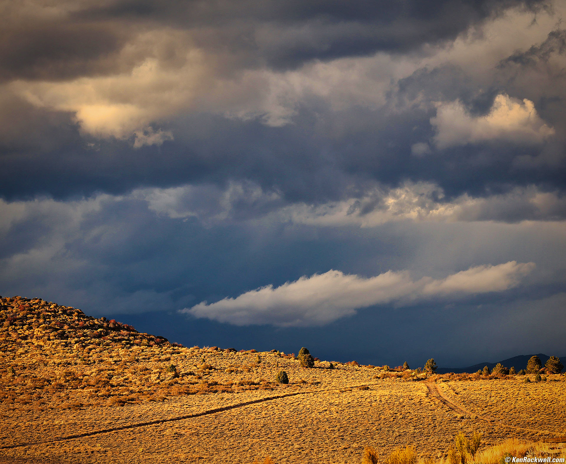 Storm Brewing North of the Bridgeport Reservoir, Bridgeport, California, 4:56 P.M., 17 October 2024. Canon R5 II, RF 24-240mm IS USM at 105mm at f/8 at 1/250 at Auto ISO 100 (LV 14.0), Skylum Luminar Neo software. More tech details. bigger or fit-to-screen.