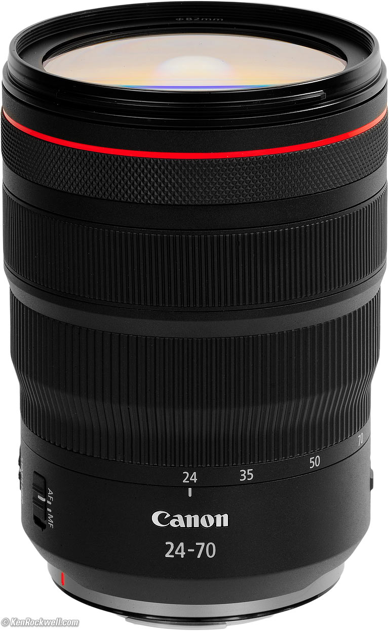 Canon RF 24-70mm f/2.8L IS USM"The Boss" Full Frame (2019 ~ today)Sample Images Intro Compatibility Compared User's Guide Recommendations R1 R3 R5 II R5 R5C R6 III R6 II R6 R R8 RP R7 R10 R50 R50V R100 Bodies Compared RF Lenses EF Lenses Flash Canon RF 24-70mm f/2.8L IS USM (82mm filters, 31.7 oz./897 g, 0.69 feet/8¼"/0.21m close focus at 24mm and 1.25'/15"/0.38m close focus at 70mm, $2,299) bigger. I got mine at B&H. I'd also get it at Adorama, at Amazon or at Crutchfield, or get it used at eBay if you know How to Win at eBay, or get it used at KEH. This all-content, junk-free website's biggest source of support is when you use those or any of these links to my personally-approved sources when you get anything, regardless of the country in which you live. Canon does not seal its boxes in any way, so never buy at retail or any other source not on my personally approved list since you'll have no way of knowing if you're missing accessories, getting a defective, damaged, returned, non-USA, store demo or used lens. Get yours only from the approved sources I use myself for the best prices, service, return policies and selection. Thanks for helping me help you! Ken.