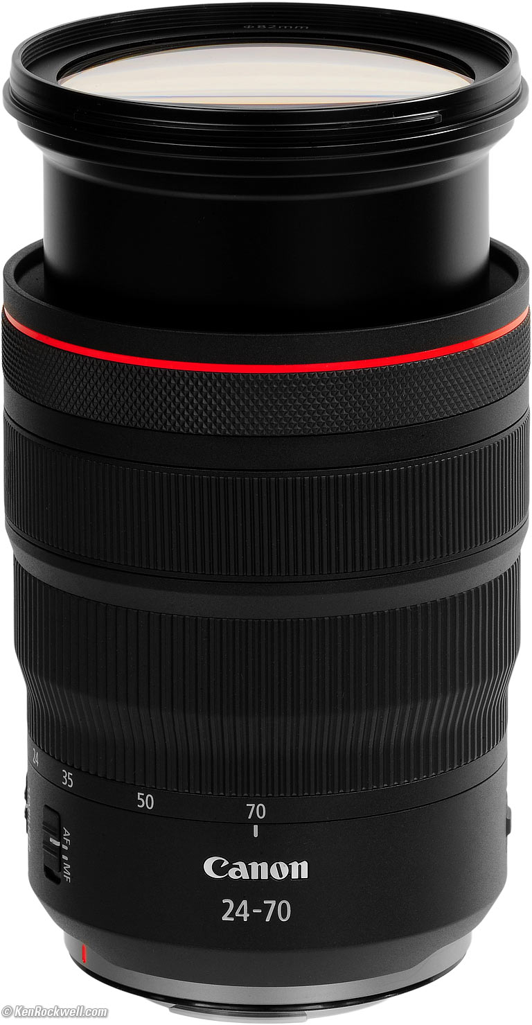 Recommendations topSample Images Intro Compatibility Compared User's Guide Recommendations I got my RF 24-70/2.8L at B&H. I'd also get it at Adorama, at Amazon or at Crutchfield, or get it used at eBay if you know How to Win at eBay, or used at KEH. If you need f/2.8 in a midrange zoom, this is an extraordinary lens. If you deserve only the very best, here you go. Personally I prefer the longer zoom range of the RF 24-105mm f/4L or 24-105mm f/4-7.1 STM over having f/2.8 but only going up to 70mm; but that's just me. I don't need f/2.8. I use a clear (UV) protective filter instead of a cap. I only use a cap when I throw this in my bag, otherwise I leave a clear protective filter on my lens at all times so I'm ready to shoot instantly. The very best protective filter is the 82mm Hoya multicoated HD3 UV which uses hardened glass and repels dirt and fingerprints. For less money, the B+W 82mm 010 is an excellent filter, as is the multicoated version and the basic multicoated Hoya filter and the Hoya Alpha filter, but the Hoya HD3 is the toughest and the best. Any of these filters protects as well and gives ultrasharp images, but since filters last a lifetime, you may as well get the best since the Hoya HD3 is tougher and stays cleaner than the others since it repels oil and dirt. I got my RF 24-70/2.8L at B&H. I'd also get it at Adorama, at Amazon or at Crutchfield, or used at eBay if you know How to Win at eBay. This 100% all-content website's biggest source of support is when you use those or any of these links to approved sources when you get anything, regardless of the country in which you live. Canon does not seal its boxes in any way, so never buy at retail or any other source not on my personally approved list since you'll have no way of knowing if you're missing accessories, getting a defective, damaged, returned, non-USA, store demo or used lens. I use the stores I do because they ship from secure remote warehouses where no one gets to touch your new camera before you do. Buy only from the approved sources I use myself for the best prices, service, return policies and selection. Thanks for helping me help you! Ken Rockwell
