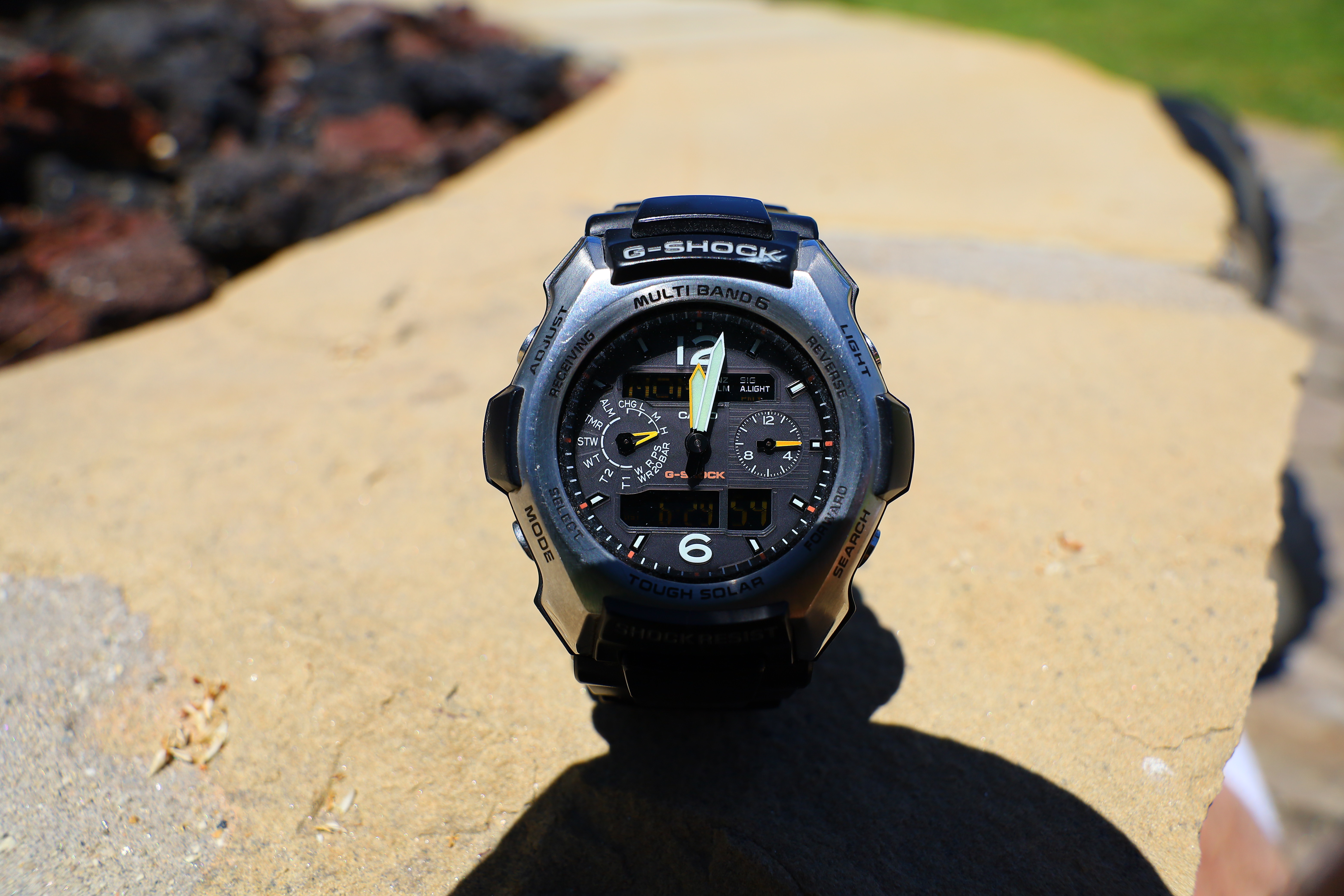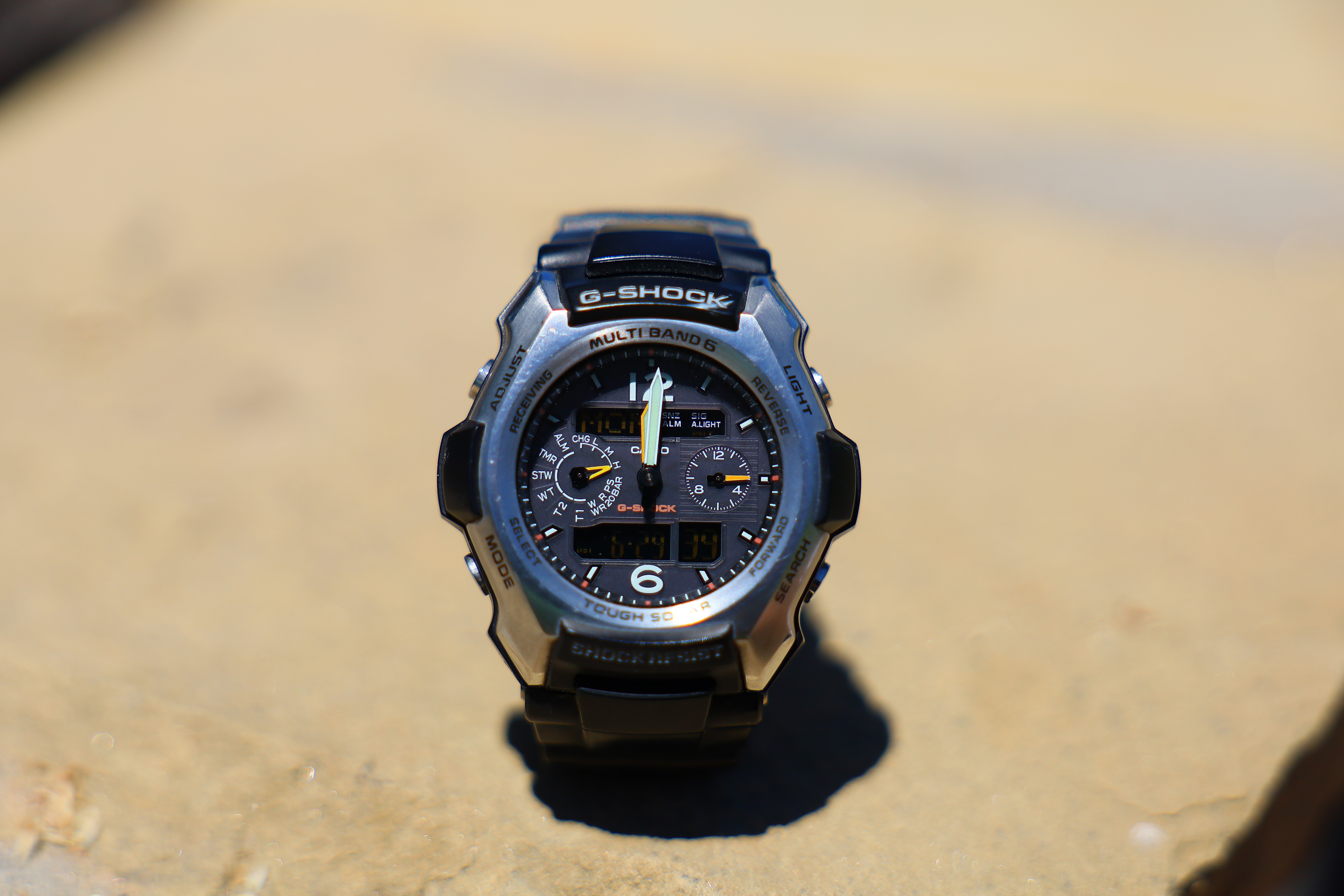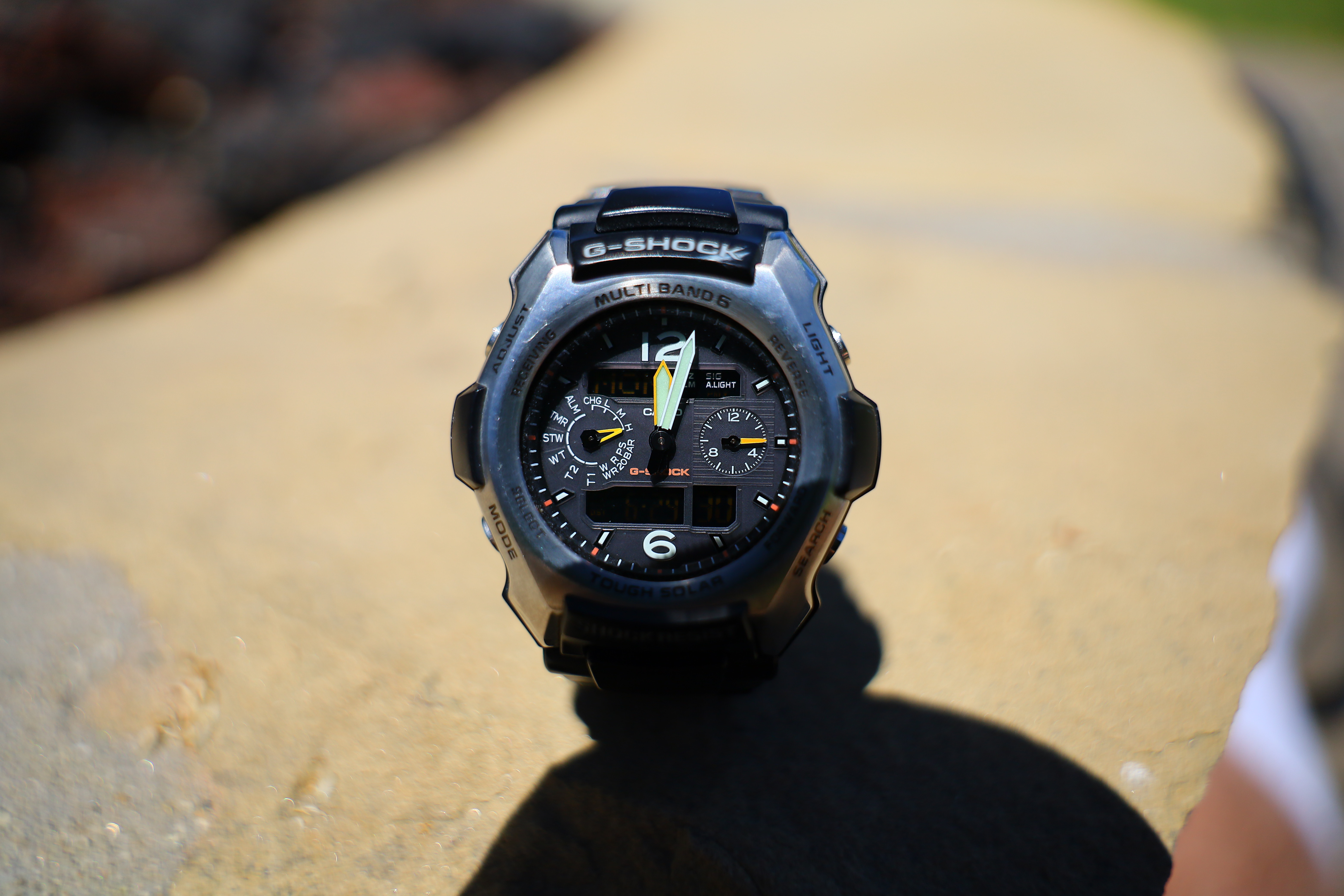 At f/8 at 24mmStopped down it's super-sharp — but you're still going to have a hard time lighting your subject: Casio G-Shock Solar Atomic Watch at close-focus distance at 24mm at f/8, 29 June 2020. bigger or camera-original © file.
