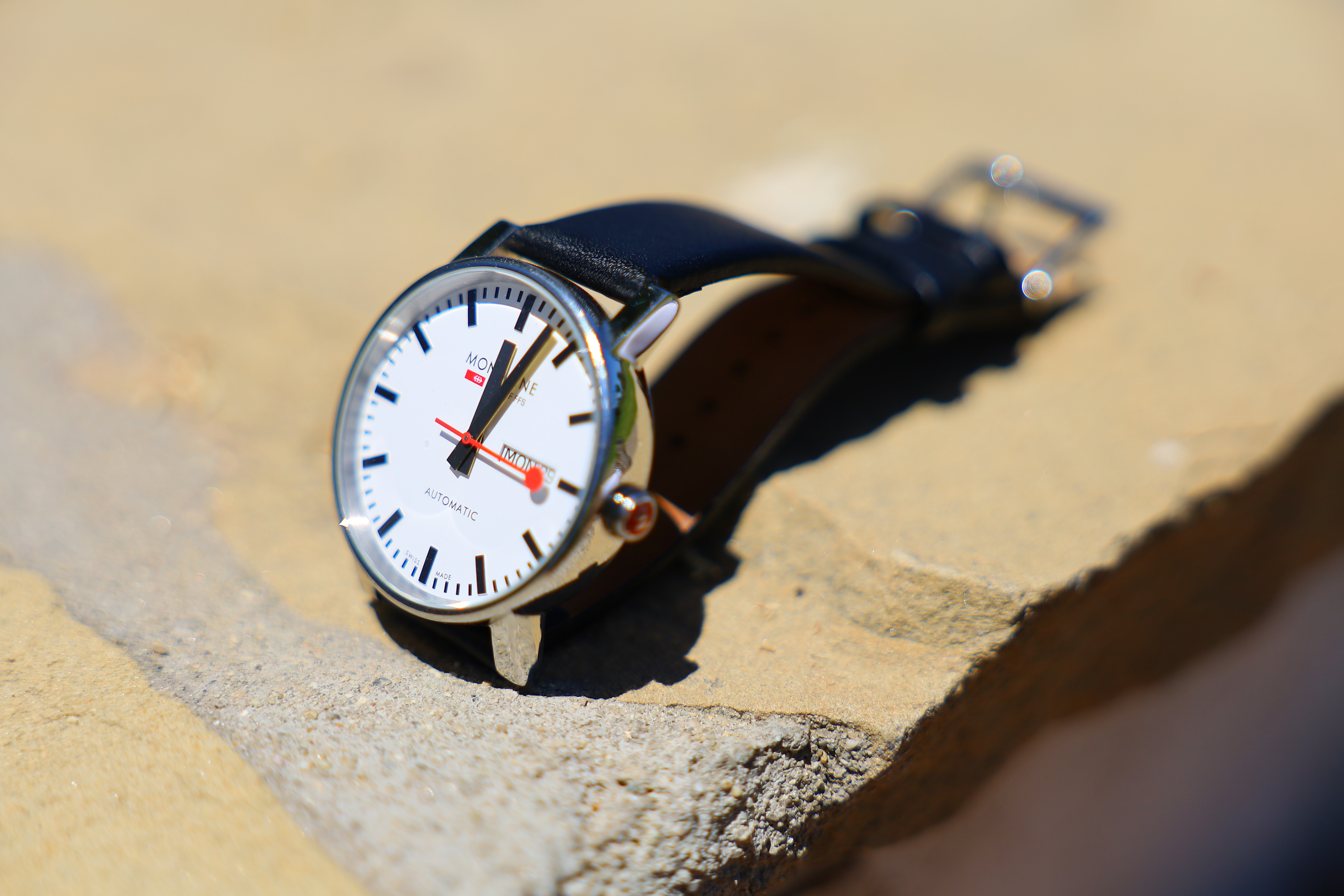Spherochromatism performance topSpherochromatism, also called secondary spherical chromatic aberration or "color bokeh," is an advanced form of spherical and chromatic aberration in a different dimension than lateral chromatic aberration. It happens in fast lenses when spherical aberration at the ends of the color spectrum are corrected differently than in the middle of the spectrum. Spherochromatism can cause colored fringes on out-of-focus highlights, usually seen as green fringes on backgrounds and magenta fringes on foregrounds. Spherochromatism is common in fast lenses of moderate focal length when shooting contrasty items at full aperture. It goes away as stopped down. This RF 24-70mm has moderately strong spherochromatism, with background highlights possibly taking on blue fringes and foreground highlights possibly taking on warm amber fringes. I noticed that Canon isn't using its magical "Blue-Refractive Compound in this lens; spherochromatism isn't that well controlled: Mondaine A132.30348.11SBB at close-focus distance at 70mm at f/2.8, 29 June 2020. bigger or camera-original © file.