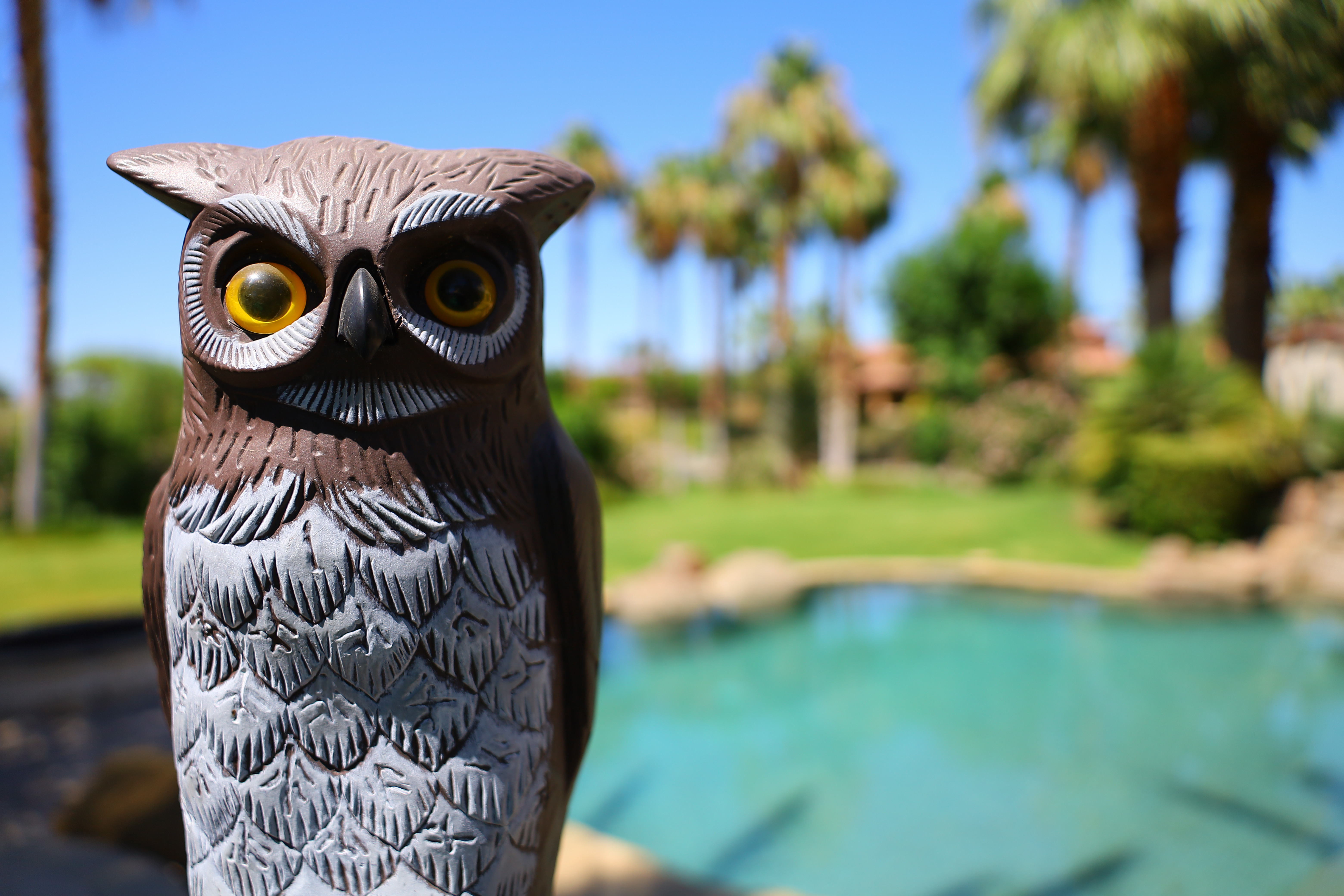 Scarecrow Owl, La Quinta, 29 June 2020. Canon EOS RP, Canon RF 24-70mm f/2.8 L IS at 70mm at f/2.8 at 1/1,000 at Auto ISO 100 (LV 13.0), exactly as shot. bigger or camera-original © file.