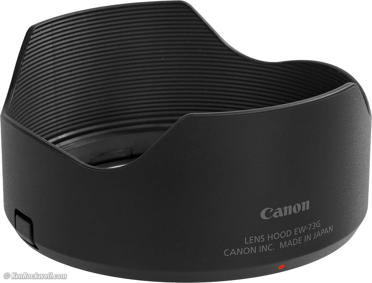 Hood specifications topEW-73G Hood for RF 24mm f/1.4L VCM. bigger. The EW-73G Hood is included.