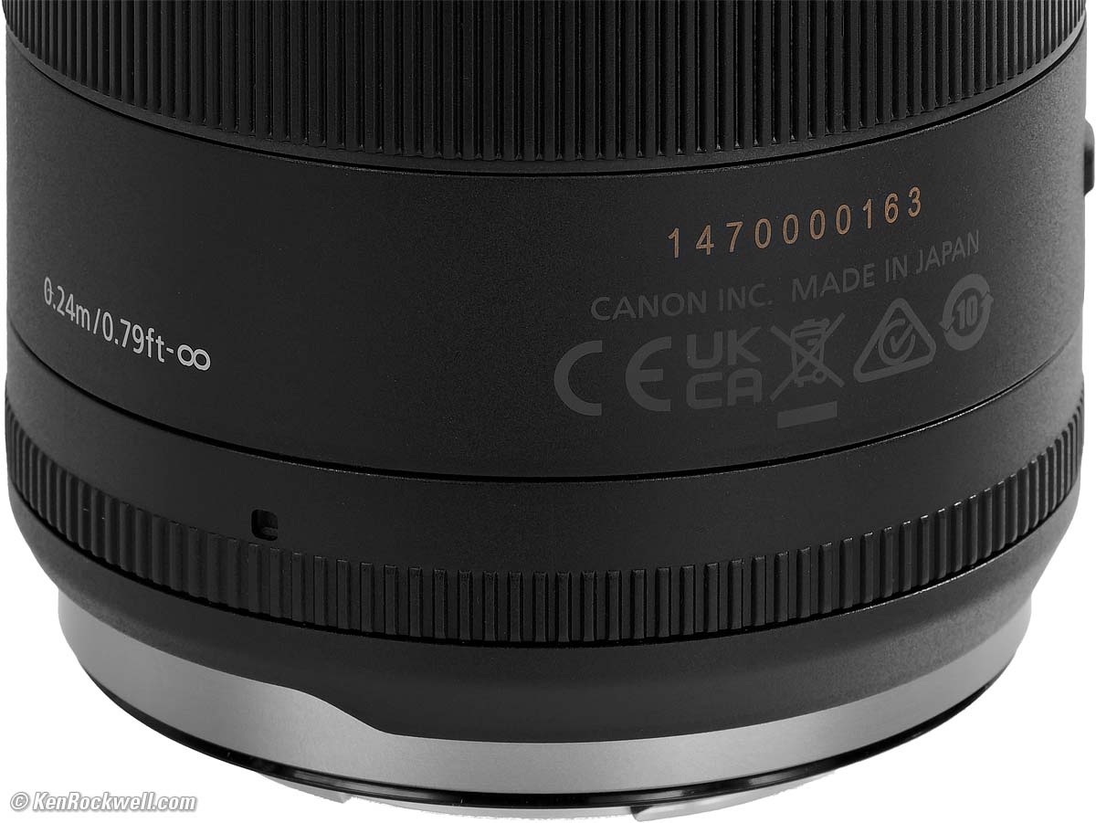 Serial NumberCanon RF 24mm f/1.4L VCM. bigger. Laser engraved in warm black on black on the bottom of the barrel.
