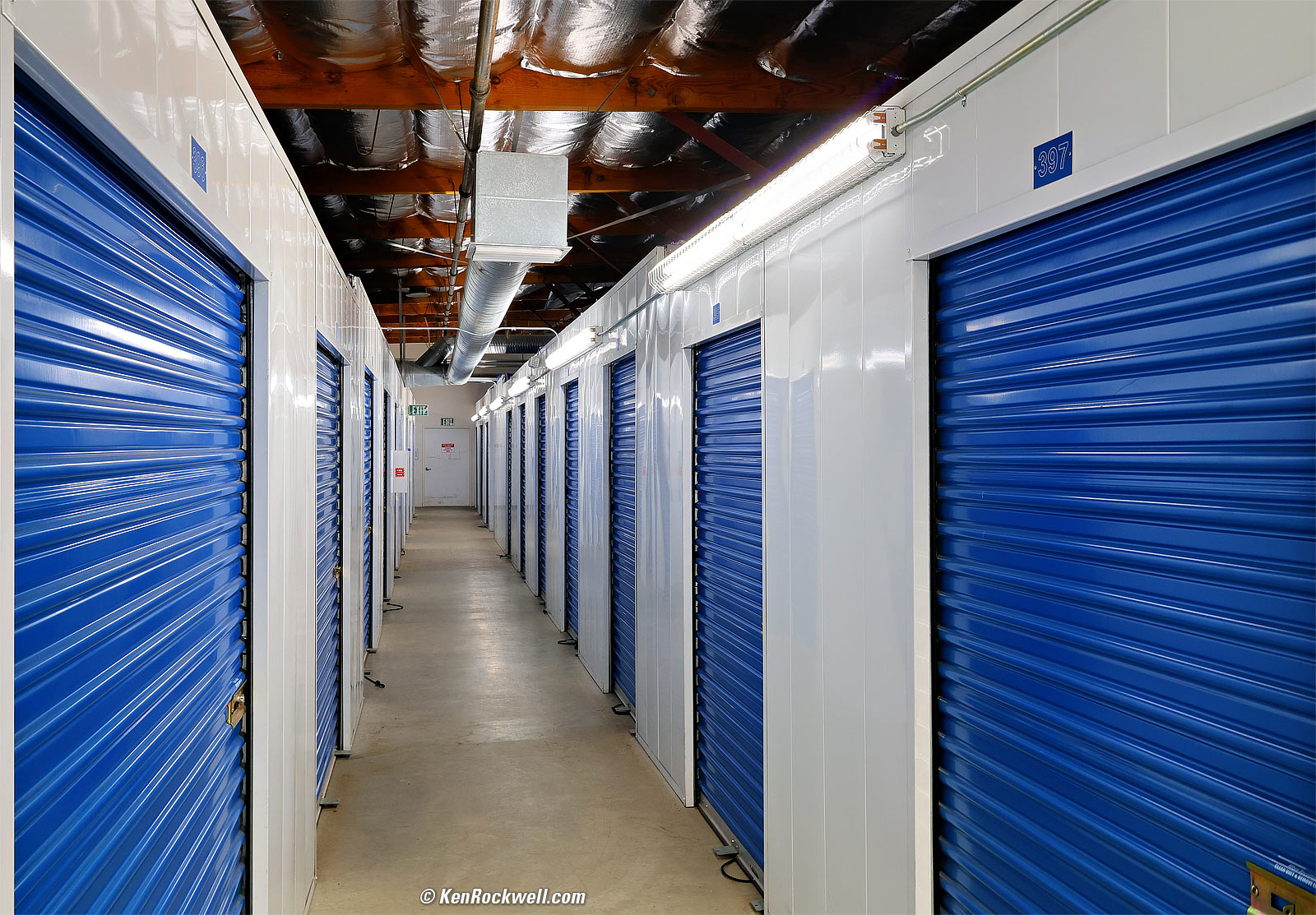 Storage, 1:42 PM, Saturday, 11 November 2023. Canon EOS R6 II with in-camera correction, f/11 handheld at 1/8 at Auto ISO 500 (LV 7.7), Radiant Photo. bigger. In-camera correction can't be turned off, however if you shoot raw data rather than JPG images, whatever software you use to create visible images from the raw data may or may not correct the distortion as is done in-camera as JPGs. You're on your own there; I don't bother with raw data. While Canon's own software probably also corrects this from RAW CR3 files, be warned that other brands of raw processing software probably won't correct the distortion, and Heaven only knows what distortion you may see then. For more critical scientific use with in-camera correction ON, use a correction factor of +0.2 in Photoshop's lens correction filter to JPG images. These aren't facts or specifications, they are the results of my research that requires hours of photography and calculations on the resulting data.