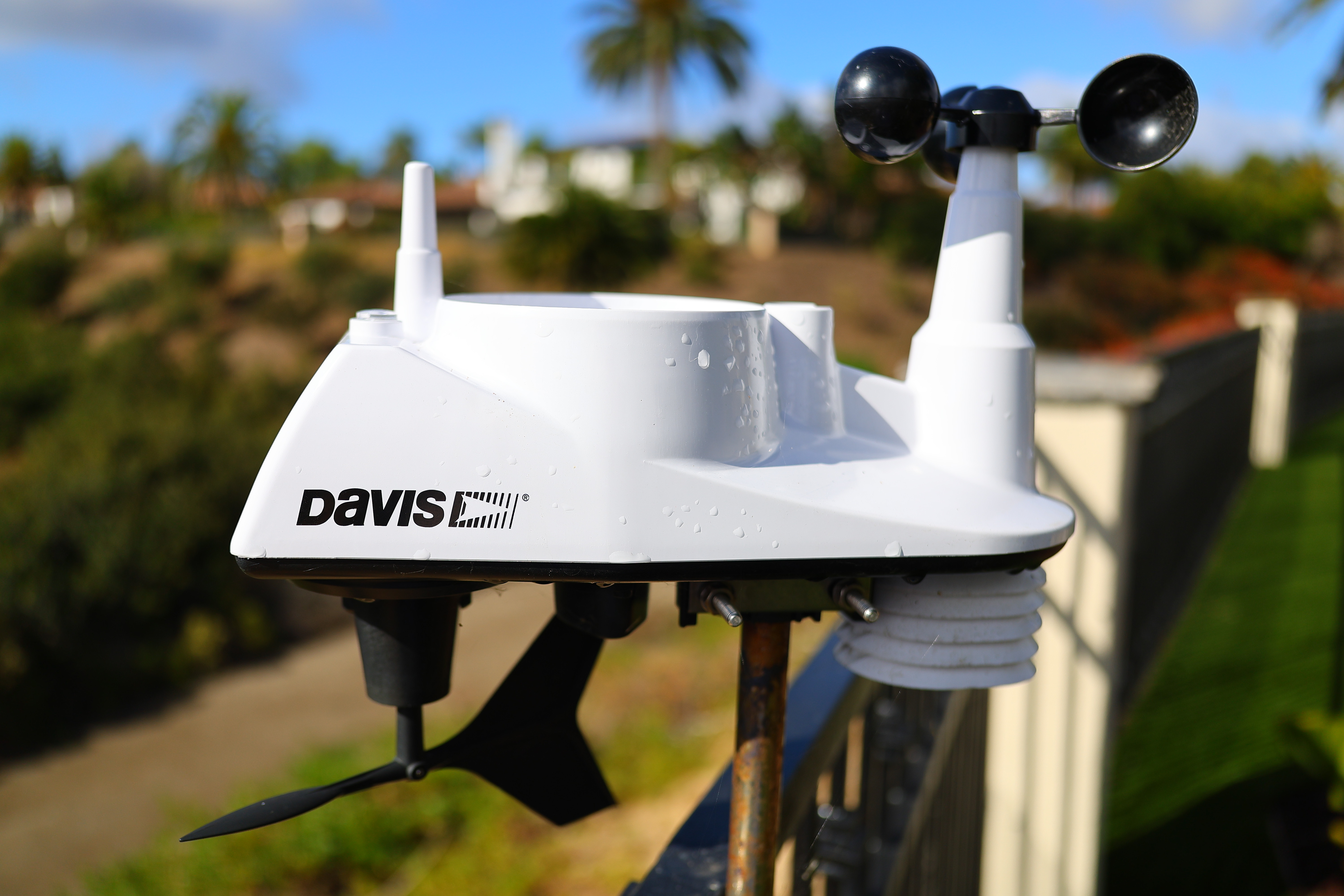 Here's a shot from headshot distance wide-open. I'm focused on the DAVIS logo. Click for the © camera-original file: Made-in-U. S. A. Davis 6250 weather station, Sunday 19 November 2023. Canon EOS R6 II at 1/2,500 at Auto ISO 100, +0.7 stops exposure compensation (LV 14.4). bigger or camera-original © file. As always, if you want to throw the background as far out of focus as possible, shoot at f/2.8 and get as close as possible.