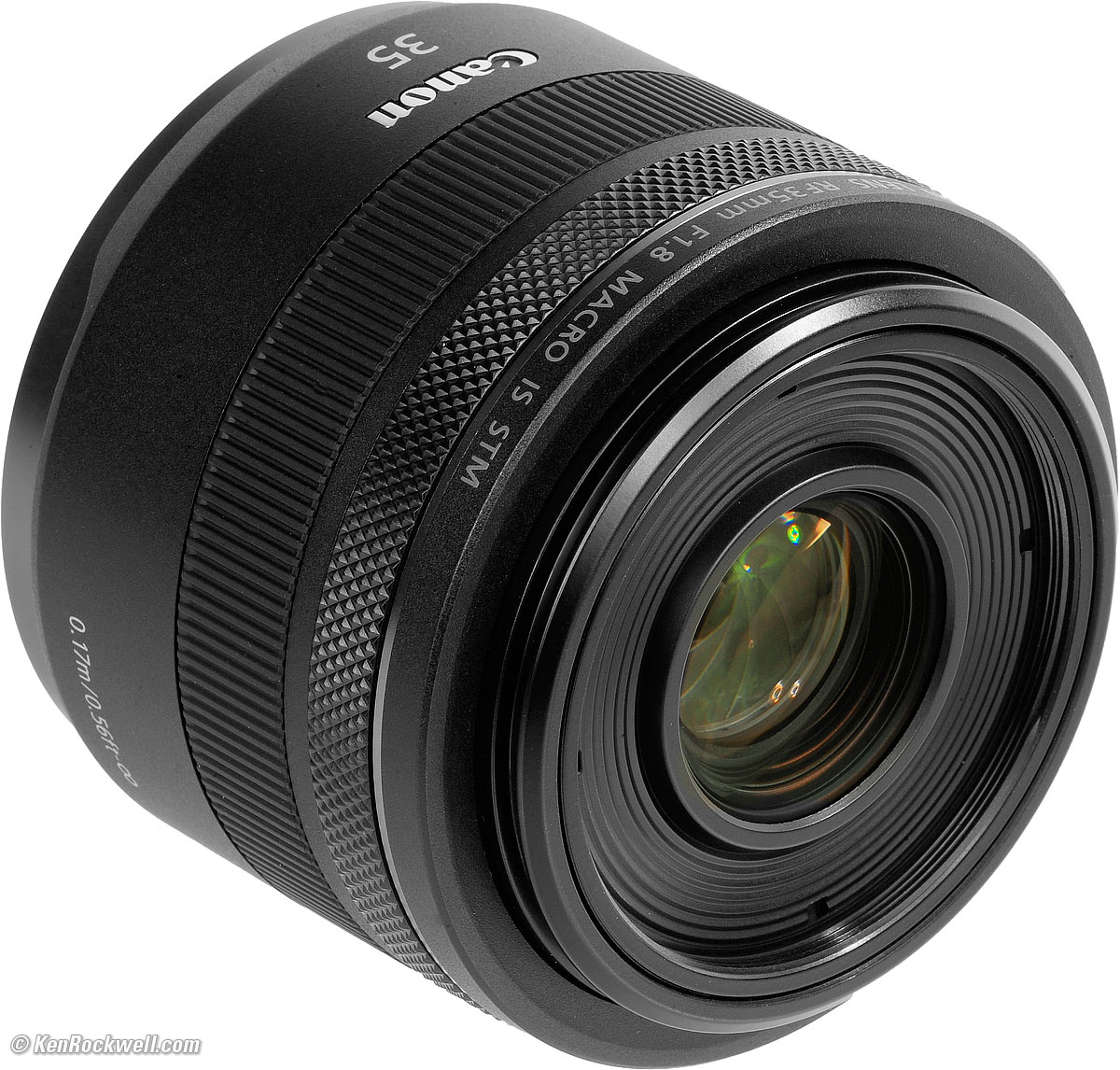 RecommendationsTop Sample Images Intro Compatibility I got my RF 35mm f/1.8 Macro at B&H. I'd also get it at Adorama, at Amazon or at Crutchfield, or used at eBay if you know How to Win at eBay, or get it used at KEH. This is a great little lens. If you think you want one, get one; there's nothing else like it. While it focuses very close, if you're serious about macro shooting you want at least an RF 100mm Macro. Less expensive and excellent options are a 100mm EF macro, and ideally the EF 180mm macro, on an adapter. This is because while you want a close picture, the longer lenses let you get far enough away (a couple of feet) so that you don't block your own light and show the subject in a more natural perspective. See also Best Macro Lenses. I use a clear (UV) protective filter instead of a cap (exactly like an iPhone) so I'm always ready to shoot instantly. I only use a cap when I throw this in a bag with other gear without padding — which is never. The UV filter never gets in the way, and never gets lost, either. The very best protective filter is the Multicoated Hoya HD3 52mm UV which uses hardened glass and repels dirt and fingerprints. It's expensive, but it will last forever long after this lens is gone. For less money, the classic Nikon 52mm NC is superb, as are the multicoated B+W 010 MRC and multicoated Hoya filters, but the Hoya HD3 is the toughest and the best. Filters last a lifetime, so you may as well get the best. The Hoya HD3 stays cleaner than the others since it repels oil and dirt. I still use my classic Nikon 52mm L37c (multicoated 370 nanometer UV) filters because I bought them back in the 1980s when they were the best, and they never wear out. If I was working in nasty, dirty areas, I'd use an uncoated 52mm Tiffen UV filter instead. Uncoated filters are much easier to clean, but more prone to ghosting. All these filters are just as sharp and take the same pictures, the difference is how much abuse they'll take and stay clean and stay in one piece. Since filters last a lifetime or more, there's no reason not to buy the best as it will last you for the next 50 years. Filters aren't throwaways like digital cameras which we replace every few years, like it or not. I'm still using filters I bought back in the 1970s! I got my RF 35mm f/1.8 Macro at B&H. I'd also get it at Adorama, at Amazon or at Crutchfield, or used at eBay if you know How to Win at eBay, or get it used at KEH. This all-content, junk-free website's biggest source of support is when you use those or any of these links to approved sources when you get anything, regardless of the country in which you live. Canon does not seal its boxes in any way, so never buy at retail or any other source not on my personally approved list since you'll have no way of knowing if you're missing accessories, getting a defective, damaged, returned, non-USA, store demo or used lens. I use the stores I do because they ship from secure remote warehouses where no one gets to touch your new camera before you do. Buy only from the approved sources I use myself for the best prices, service, return policies and selection. Thanks for helping me help you! Ken Rockwell.