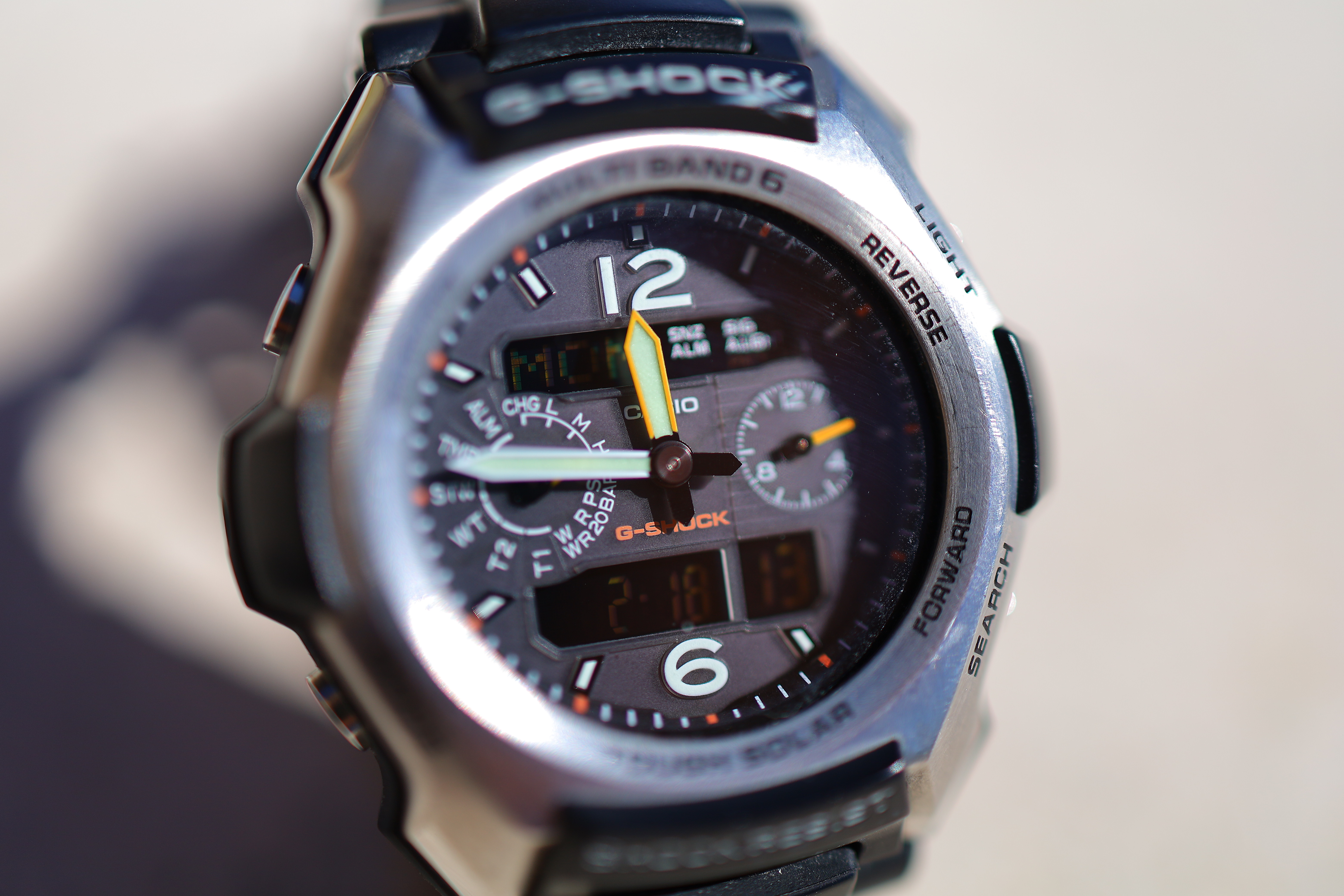 Focus-Stacked at f/1.8The EOS RP and Canon's free software make focus stacking easy, so the laws of physics no longer apply. let's see what happens doing this at f/1.8: Casio G-Shock Solar Atomic Watch near close-focus distance, 18 February 2019. bigger or full-resolution processed © file.