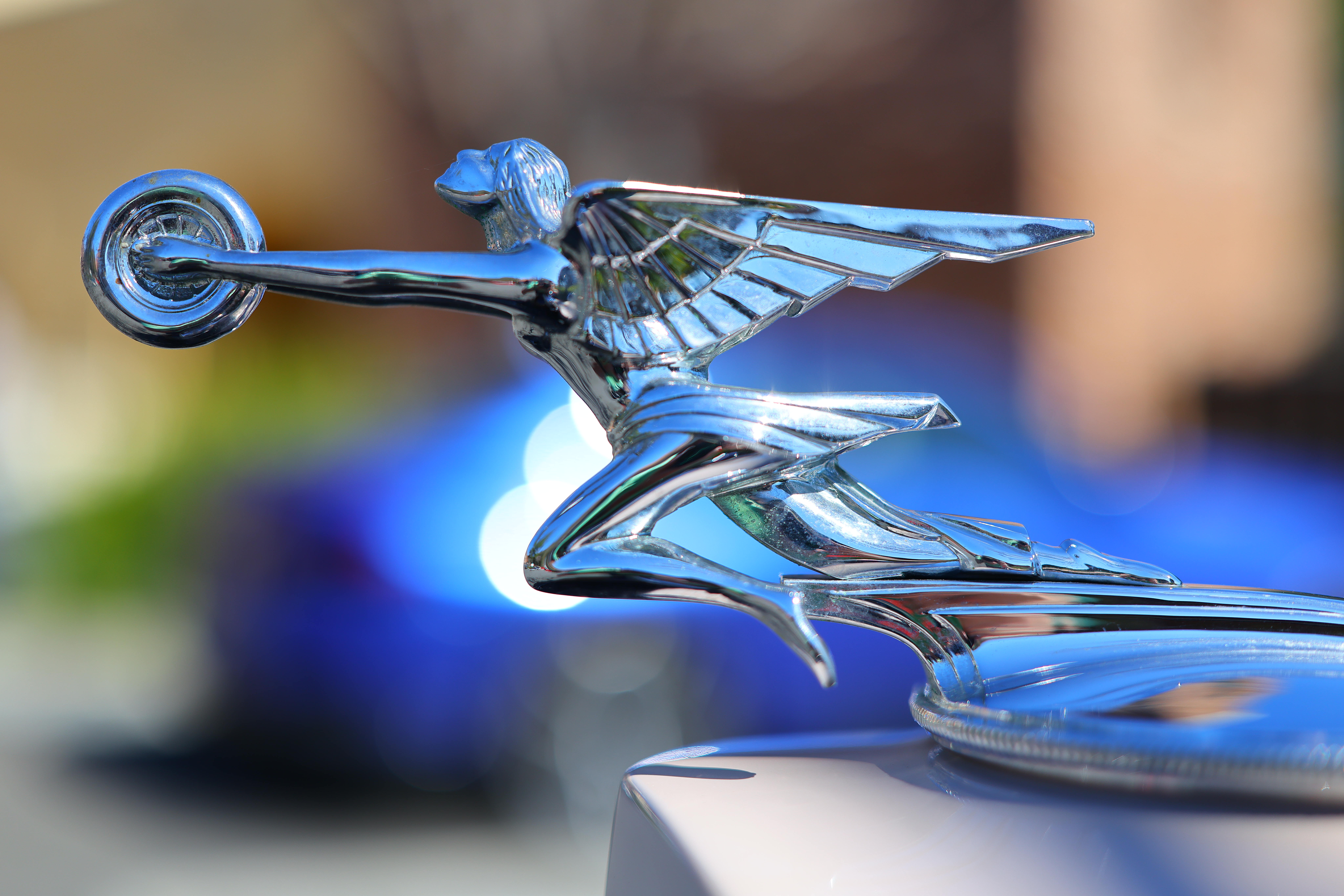 March 2025 Better Pictures Canon Reviews Mirrorless RF Lenses EF Lenses Flash All Reviews Sample Images topSample Images Intro New Good Bad Missing Specifications Accessories USA Version Performance Usage Recommendations More More samples throughout this review at Bokeh, Falloff, Macro, Spherochromatism and Sunstars. These are just snapshots; my real work is in my Gallery. Ideally I would shoot this lens outdoors at night to take advantage of its f/1.4 aperture, but tough, it was cold and dreary outside in the middle of winter so here are sunny-day photos instead. These are all shot hand-held at the lowest-quality JPG setting ( The Goddess of Speed Adorning a 1934 Packard Super 8 Roadster, 11:18 AM, Saturday, 22 February 2025. Canon EOS R5 II, f/2 for a soft background at 1/2,500 at Auto ISO 100 (LV 13.4), Radiant Photo software. bigger or camera-original 45 MP © 3 MB JPG file. The blur circles are perfectly round; you can't see the 11-blade diaphragm at all and bokeh is beautiful.