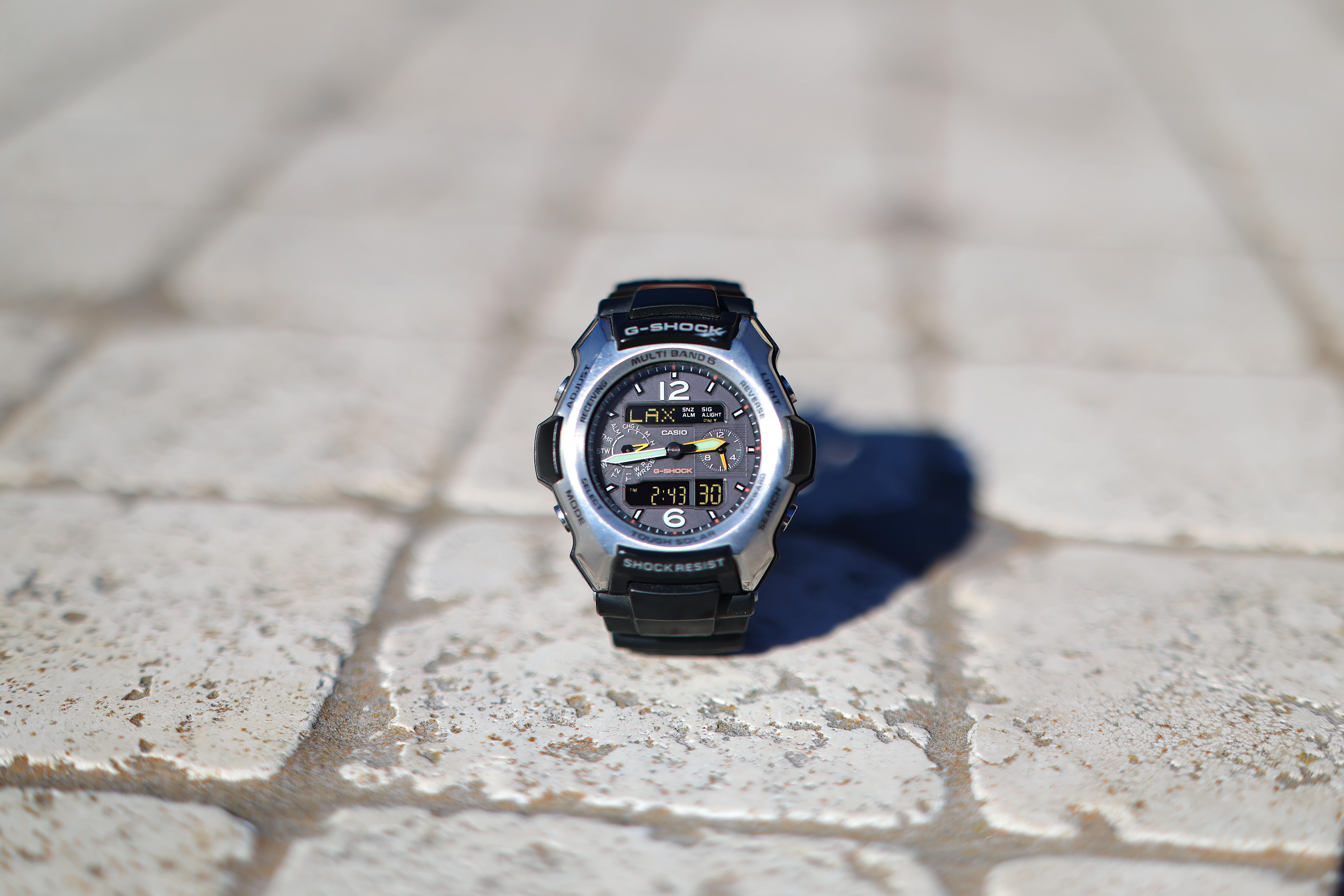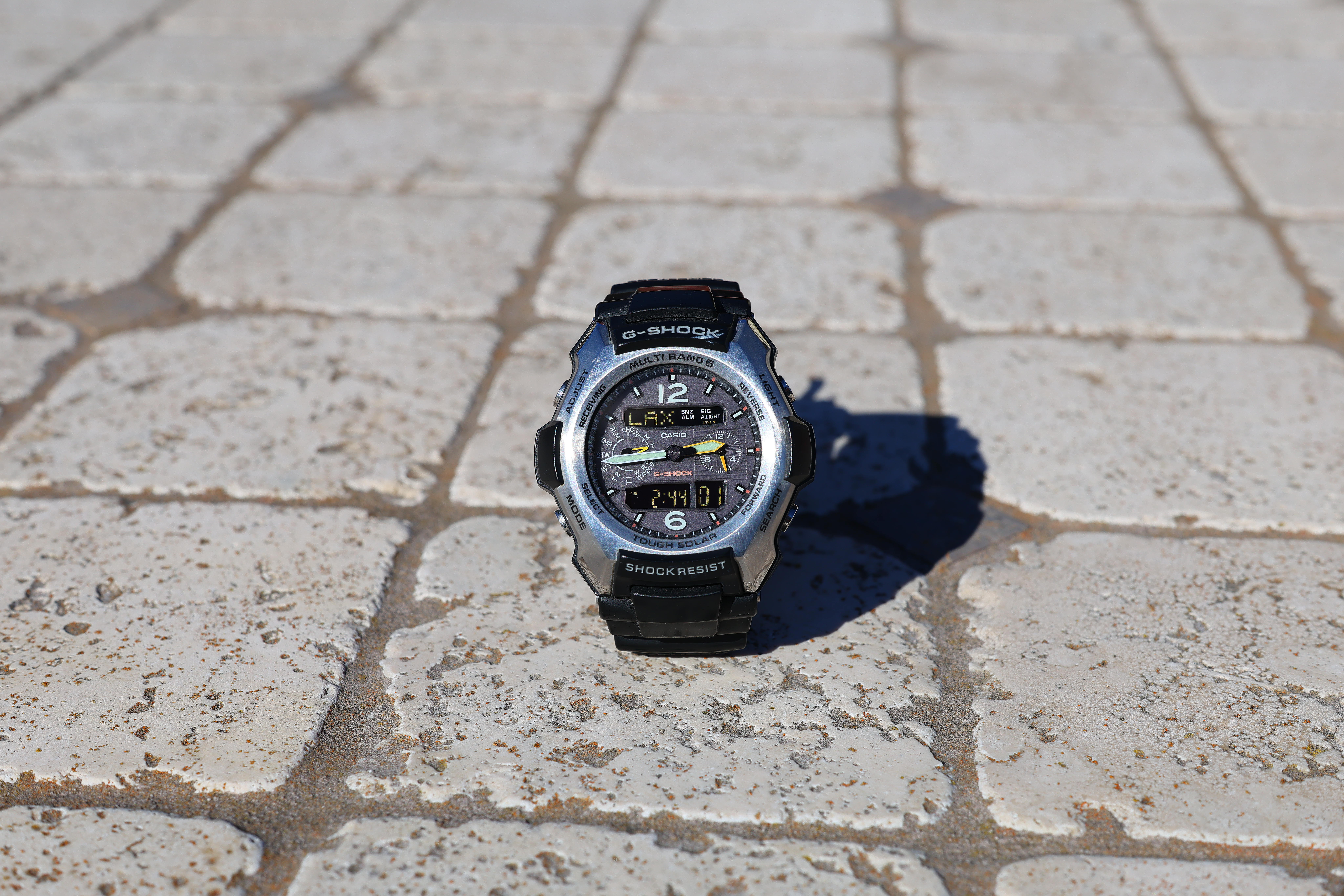 At f/8As all lenses, it's ultra-sharp at f/8: Casio G-Shock Solar Atomic Watch at close-focus distance, 2:44 PM, Monday, 24 February 2025. Shot on Canon EOS R5 II at 1/500 at Auto ISO 100 (LV 15.0). bigger or camera-original © file.