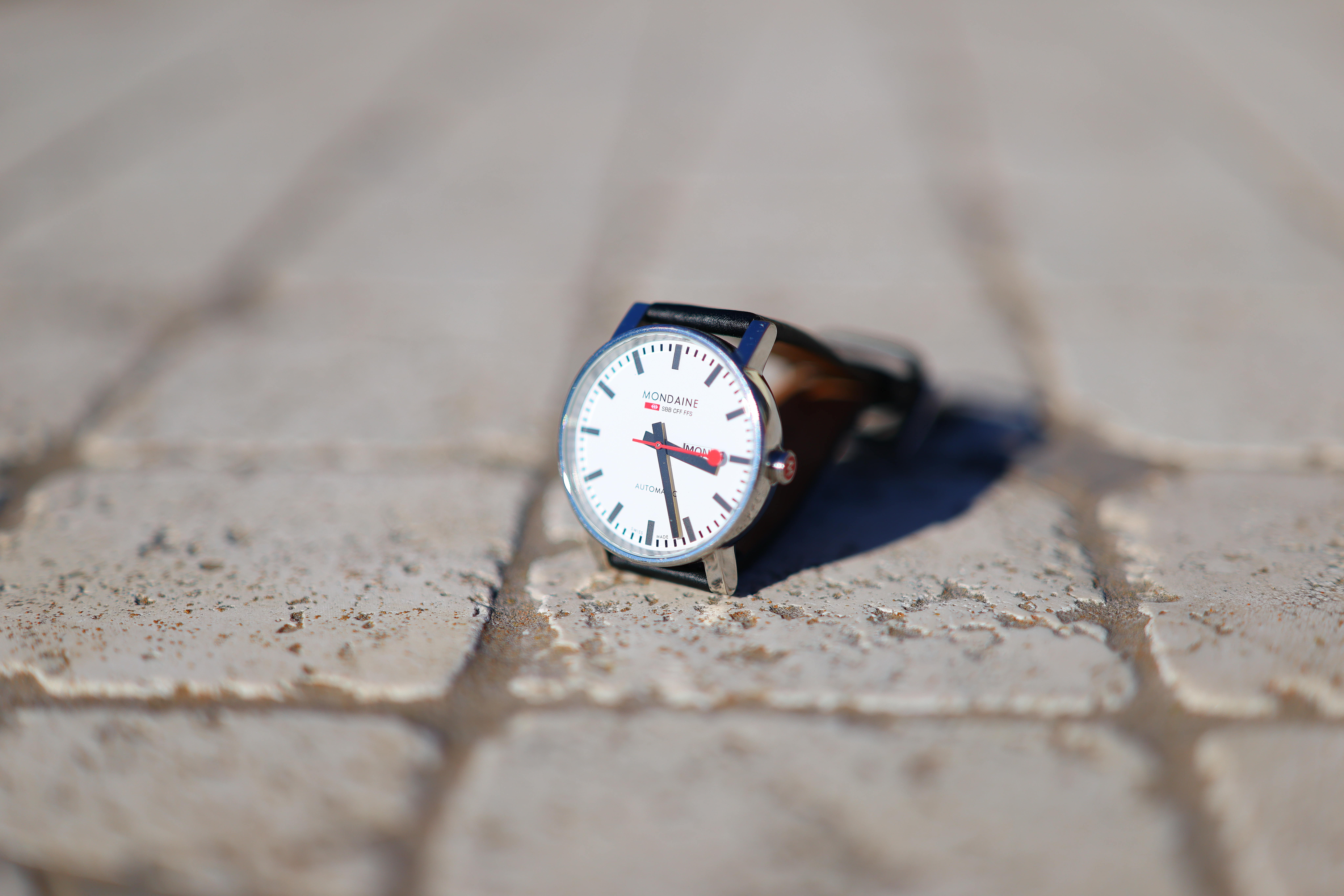 Spherochromatism performance topSpherochromatism, also called secondary spherical chromatic aberration or "color bokeh," is an advanced form of spherical and chromatic aberration in a different dimension than lateral chromatic aberration and therefore cannot be corrected with software or automatic corrections. It happens mostly in fast normal and tele lenses when spherical aberration at the ends of the color spectrum are corrected differently than in the middle of the spectrum. Spherochromatism can cause colored fringes on out-of-focus highlights, usually seen as green fringes on backgrounds and magenta fringes on foregrounds. Spherochromatism is common in fast lenses of moderate focal length when shooting contrasty items at full aperture. It goes away as stopped down. It has a fair amount of spherochromatism, with blue-cyan fringes behind and red-magenta fringes ahead of the plane of perfect focus: Mondaine A132.30348.11SBB at close-focus distance at f/1.4, 24 February 2025. Shot on Canon EOS R5 II at 1/12,800 at Auto ISO 100 (LV 14.6). bigger or camera-original © file.