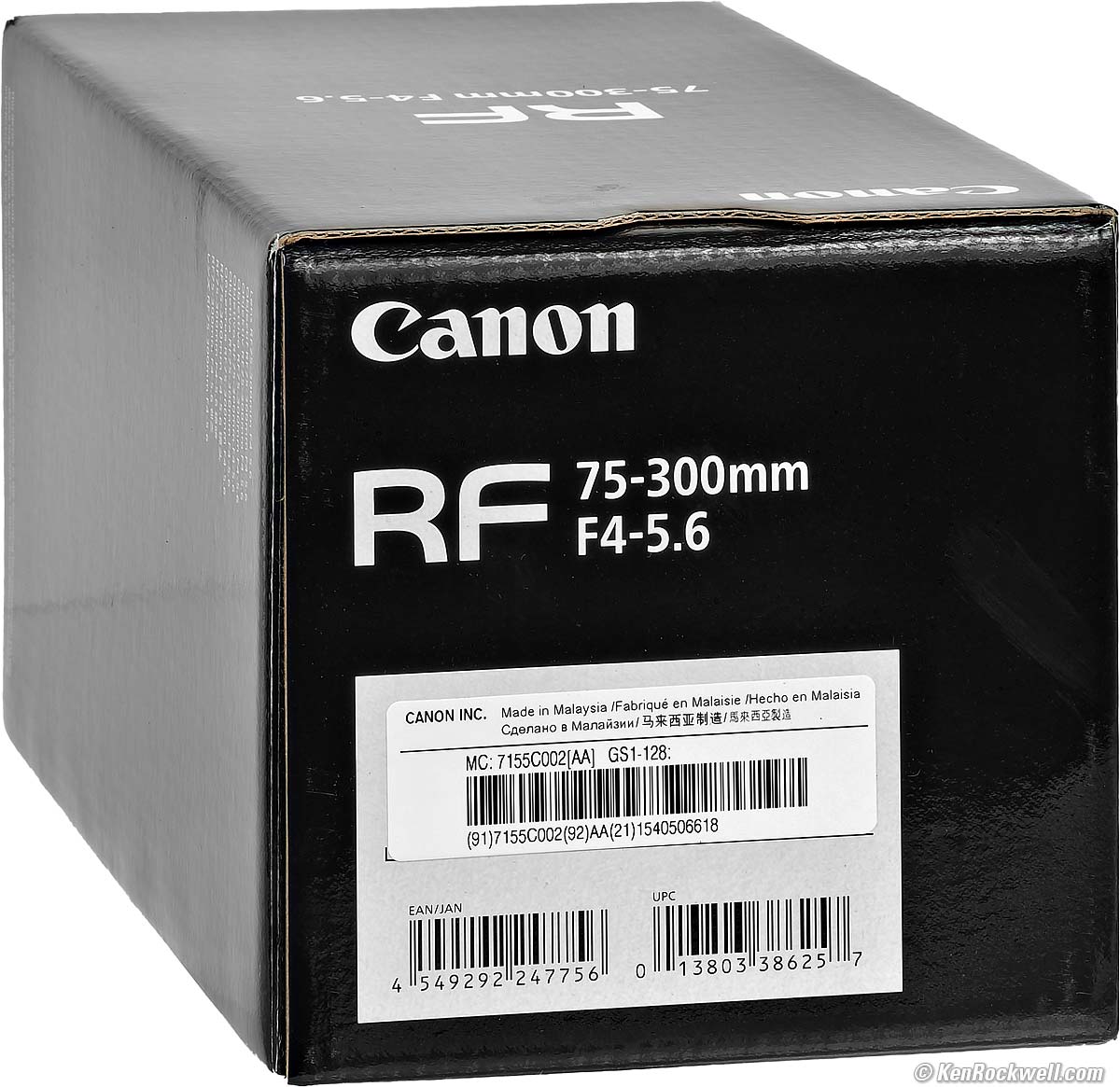 Made inCanon RF 75-300mm f/4-5.6. bigger. Made in Malaysia.