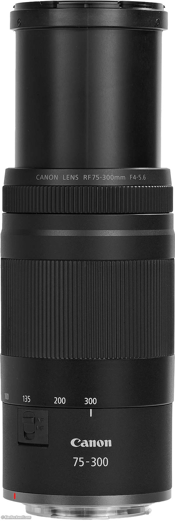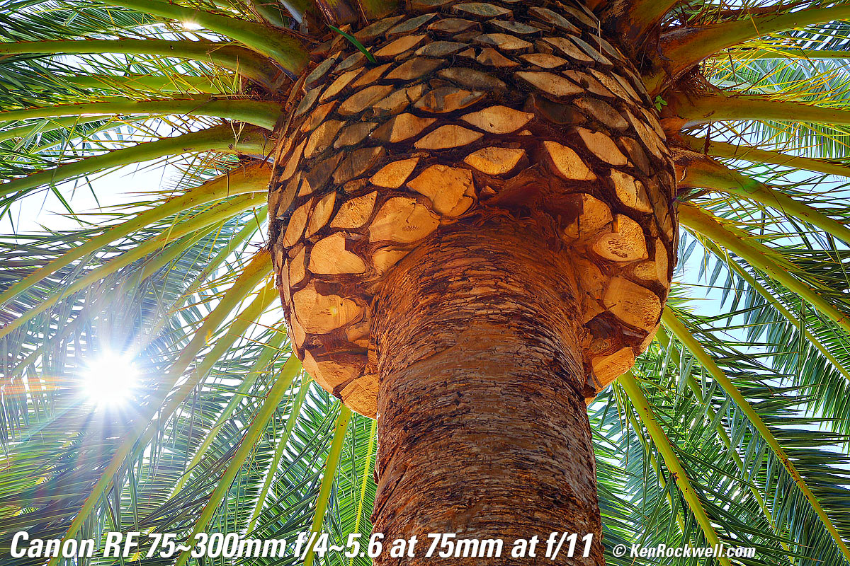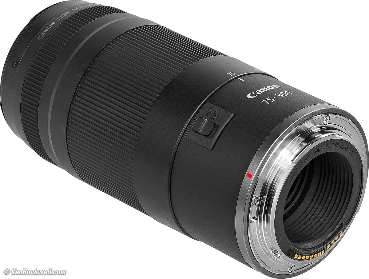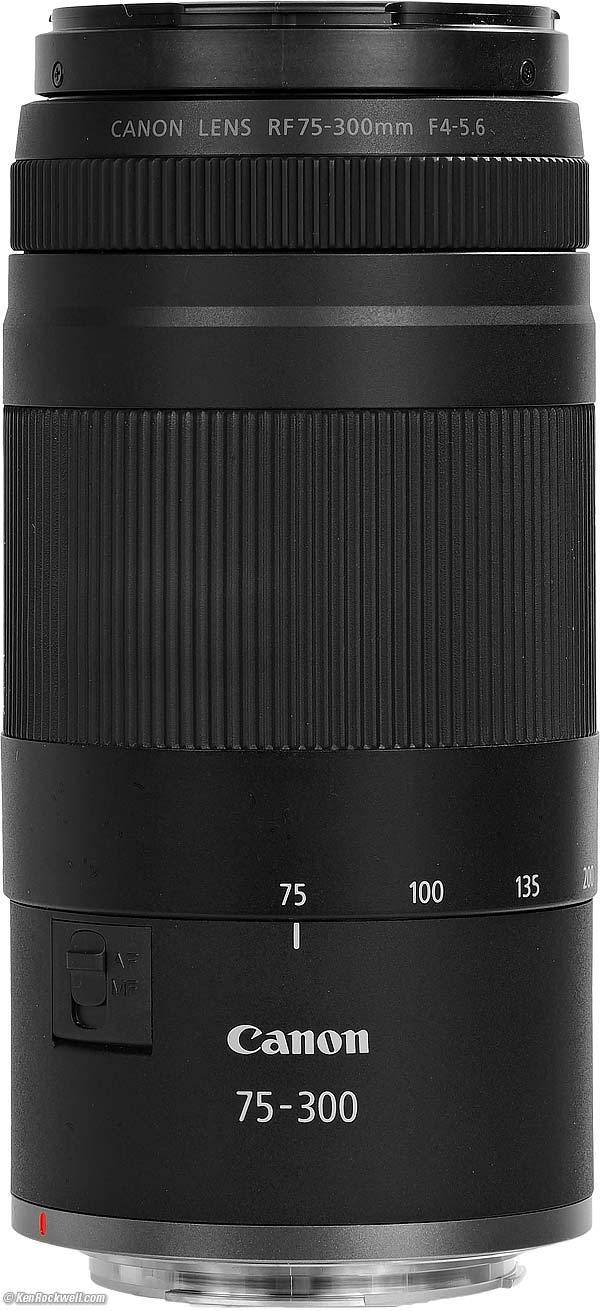 Canon RF 75-300mmf/4-5.6 Full-Frame, Unstabilized (2025 ~ today)Sample Images Intro New Good Bad Missing R1 R3 R5 II R5 R5C R6 III R6 II R6 R R8 RP R7 R10 R50 R50V R100 Canon: Bodies Compared RF Lenses EF Lenses Flash Canon RF 75-300mm f/4-5.6 (58mm filters, 17.9 oz./507g, 4.9'/1.5m close focus, 0.25× macro ratio, $239). bigger. I got mine at B&H. I'd also get it at Adorama, at Amazon, at B&H, or get it used if you know How to Win at eBay, or get it used at KEH. This 100% all-content, junk-free website's biggest source of support is when you use those or any of these links to my personally approved sources I've used myself for way over 100 combined years when you get anything, regardless of the country in which you live. Canon does not seal its boxes in any way, so never buy at retail or any other source not on my personally approved list since you'll have no way of knowing if you're missing accessories, getting a defective, damaged, returned, non-USA, store demo or used lens — and all of my personally approved sources allow for 100% cash-back returns for at least 30 days if you don't love your new lens. I've used many of these sources since the 1970s because I can try it in my own hands and return it if I don't love it, and because they ship from secure remote warehouses where no one gets to touch your new lens before you do. Buy only from the approved sources I've used myself for decades for the best prices, service, return policies and selection.