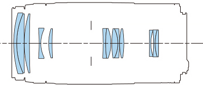 Optics specifications topInternal Optical Construction. 13 elements in 9 groups. Pumper zoom that gets longer as zoomed to 300mm. Front-group focus: the front of the lens rotates and moves in and out as it focuses. Super Spectra multicoating.