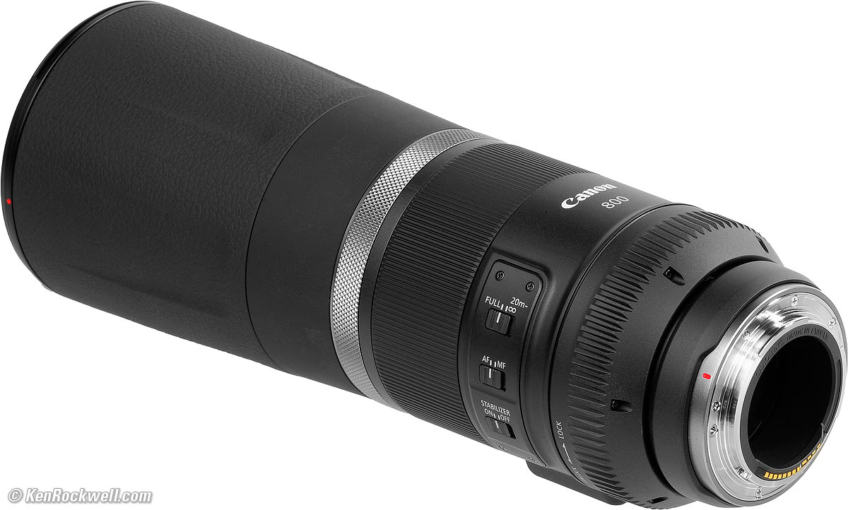 Mechanical Quality performance topCanon 800mm f/11 IS STM. bigger. This is a mostly plastic lens, with glass glass and a metal mount.