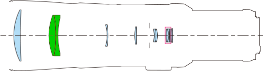 Optics specifications topCanon RF 800mm f/11 internal optical construction. Fresnel (DO or "Diffractive Optics") elements. IS section. 11 elements in 8 groups.