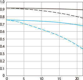 Sharpness performance topLens sharpness has nothing to do with picture sharpness; every lens made in the past 100 years is more than sharp enough to make super-sharp pictures if you know what you're doing. The only limitation to picture sharpness is your skill as a photographer. It's the least talented who spend the most time worrying about lens sharpness and blame crummy pictures on their equipment rather than themselves. Skilled photographers make great images with whatever camera is in their hands; I've made some of my best images of all time with an irreparably broken camera! Most pixels are thrown away before you see them, but camera makers don't want you to know that. This is an ultrasharp lens, however it will take skill to get the sharpest pictures with it. See my Canon RF 800mm User's Guide. Canon RF 800mm MTF at 10 cyc/mm (black) and 30 cyc/mm (blue). Sagittal (solid) and meridional (dashed).
