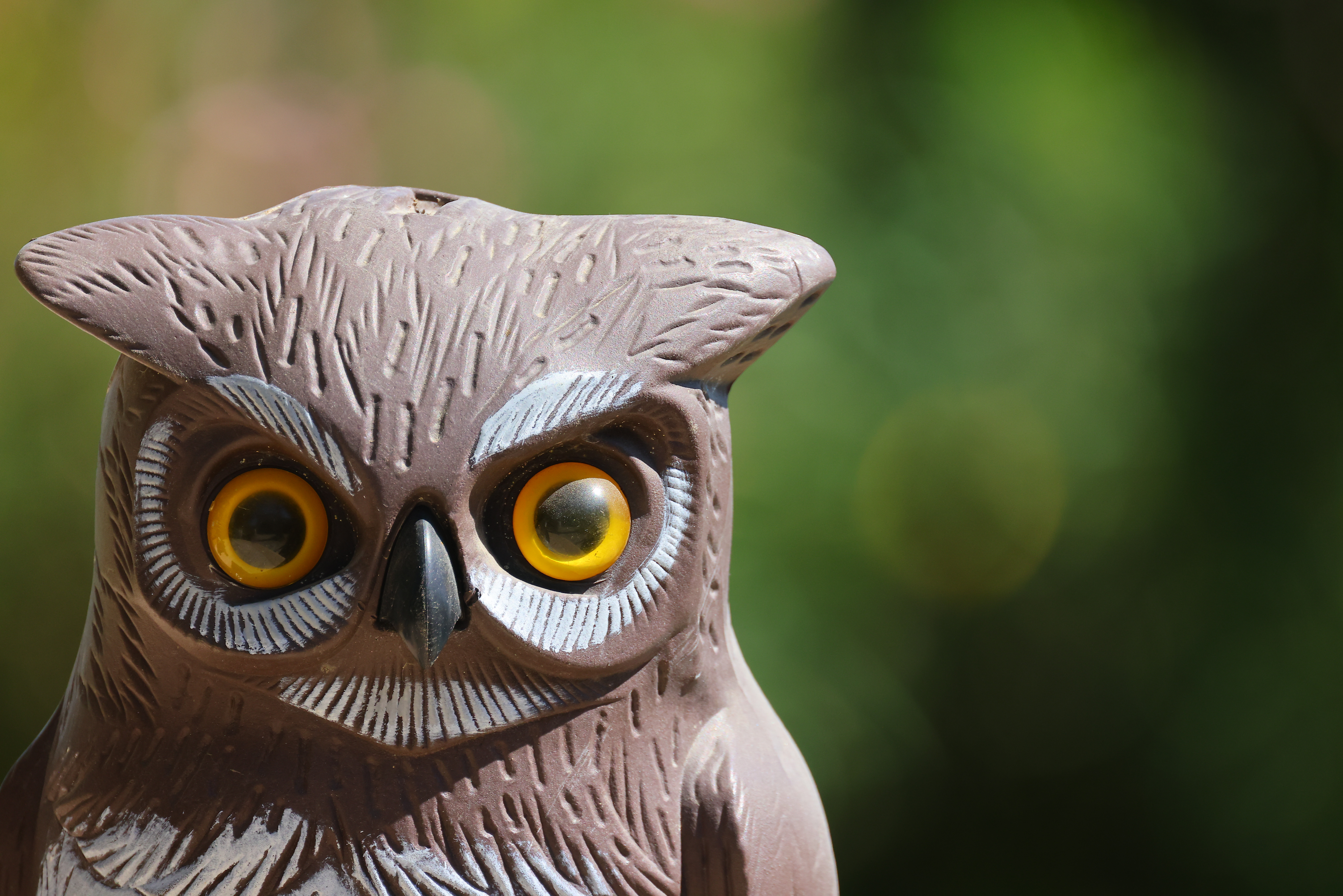Bokeh performance topBokeh, the feel, character or quality of out-of-focus areas as opposed to how far out of focus they are, is neutral. Even though it's "only" f/11, focal length has far more to do with depth of field than f/stop, so backgrounds are usually very far out of focus. Here's a photo from headshot distance: Scarecrow Owl, 14 August 2020. Canon EOS R5, Canon RF 800mm IS STM at f/11 hand-held at 1/1,000 at Auto ISO 1,600 (LV 13.0). bigger or camera-original © file. As always, if you want to throw the background as far out of focus as possible, get as close as you can.
