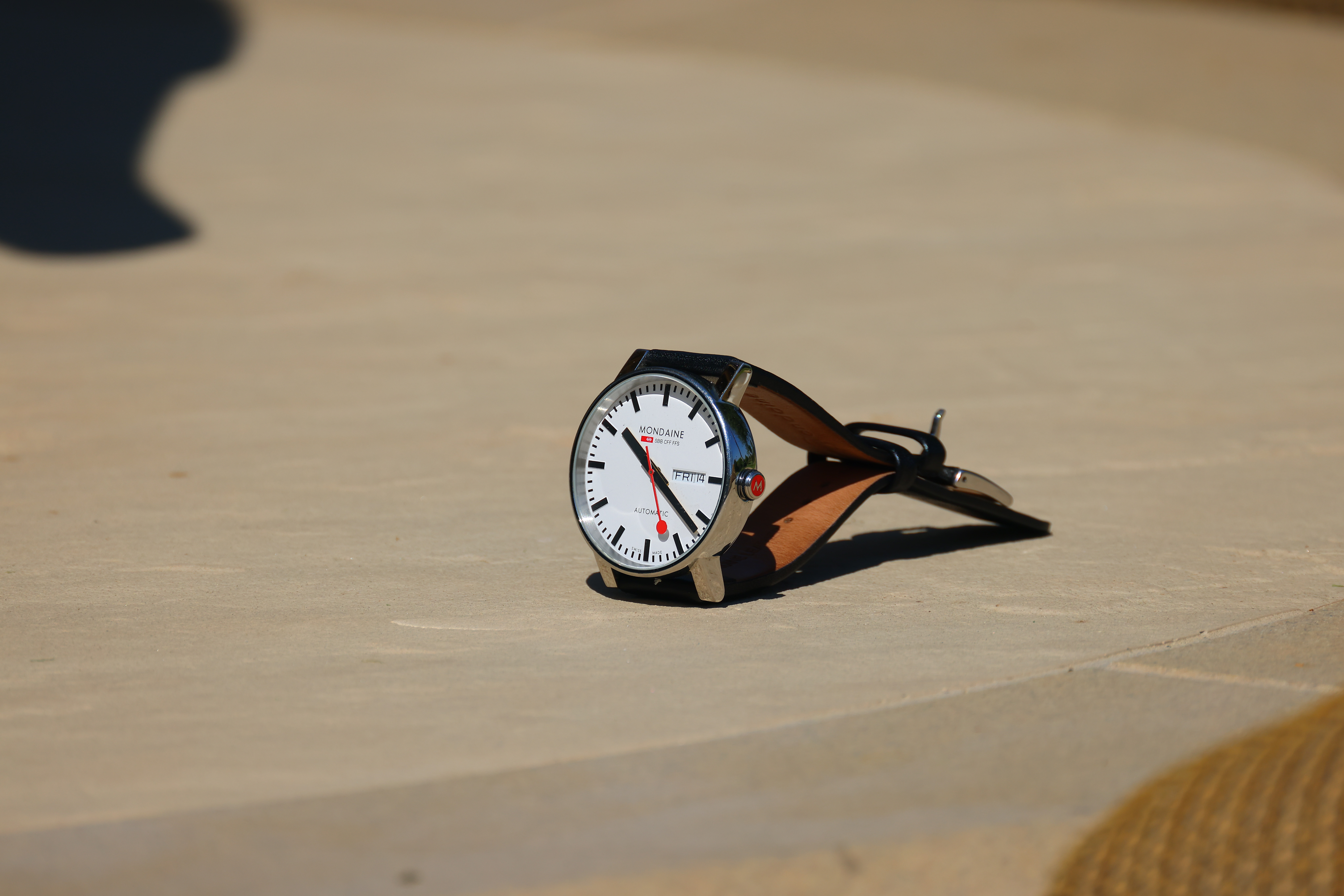 Spherochromatism performance topSpherochromatism, also called secondary spherical chromatic aberration or "color bokeh," is an advanced form of spherical and chromatic aberration in a different dimension than lateral chromatic aberration. It happens mostly in fast normal and tele lenses when spherical aberration at the ends of the color spectrum are corrected differently than in the middle of the spectrum. Spherochromatism can cause colored fringes on out-of-focus highlights, usually seen as green fringes on backgrounds and magenta fringes on foregrounds. Spherochromatism is common in fast lenses of moderate focal length when shooting contrasty items at full aperture. It goes away as stopped down. I didn't expect to see spherochromatism in this lens because it's so slow, and I don't: Mondaine A132.30348.11SBB at close-focus distance, 14 August 2020. Canon EOS R5, Canon RF 800mm IS STM at f/11 hand-held at 1/1,000 at Auto ISO 320 (LV 15.3), Perfectly Clear. bigger or camera-original © file.