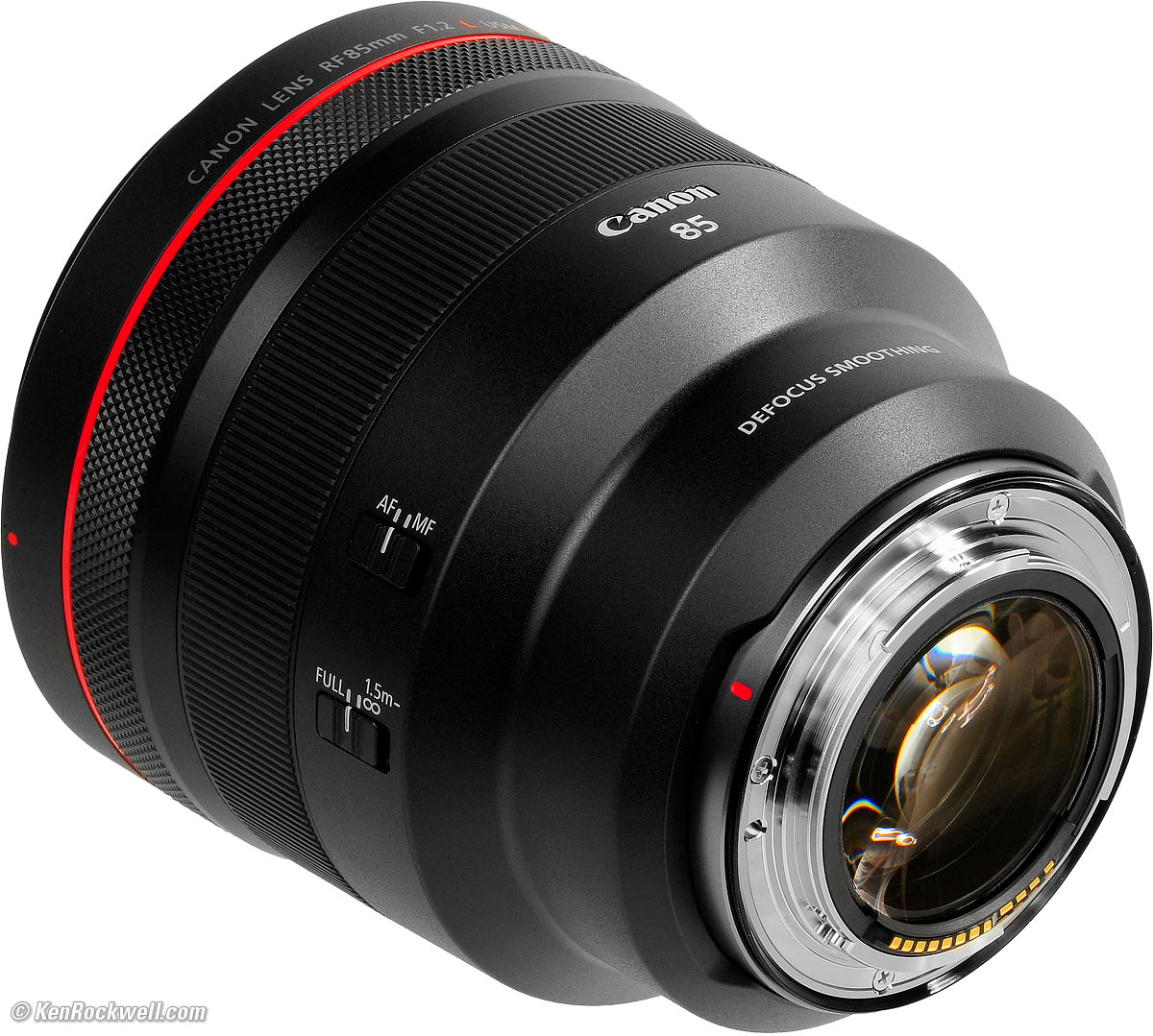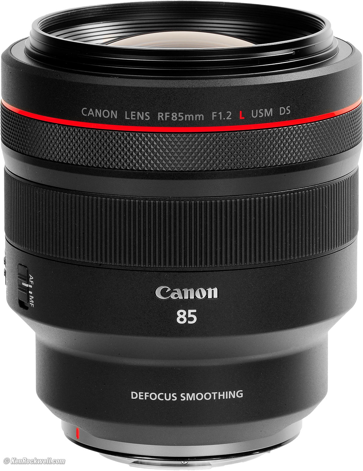 Name specifications topCanon calls this the Canon RF85mm F1.2L USM DS:RF: Works only on Canon's EOS-R Mirrorless cameras. L: Expensive as L. USM: Ring-Type UltraSonic (autofocus) Motor. DS: Defocus Smoothing, uses internal edge-graduated neutral-density filters to soften the edges of out-of-focus blur circles.