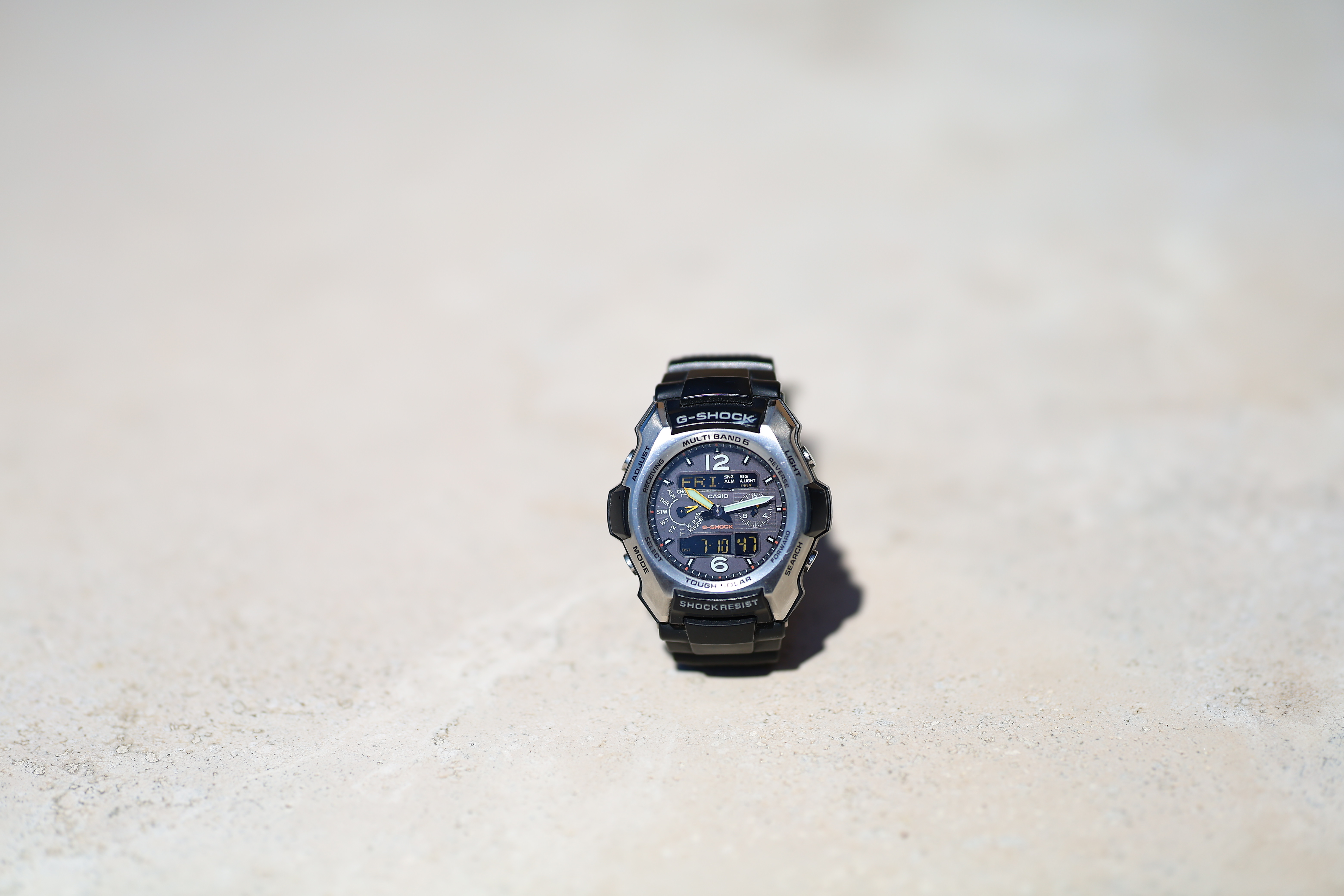 Macro Performance performance topMacro performance is the same as every other 85mm lens made since the 1960s, focusing to 0.85m. Nothing special here. If you want macro, get the RF 85mm f/2 IS STM Macro instead. Casio G-Shock Solar Atomic Watch at f/1.2 at close-focus distance, 10 July 2020. Canon EOS RP at ISO 50 at 1/3,200. bigger or camera-original © file. It doesn't get any closer than classic lenses, but it is ridiculously sharp, even wide-open at f/1.2 (remember there is zero depth-of-field at macro distances at f/1.2): 1,200 × 900 pixel (5.2× magnification) crop from above. bigger or camera-original © file. If this 1,200 × 900 pixel crop is about 3" (7.5cm) wide on your screen, the complete image would print at a large 14 × 21″ (35 × 55 cm) at this same high magnification. If this 1,200 × 900 pixel crop is about 6" (15cm) wide on your screen, the complete image would print at a huge 27½ × 41¼″ (70 × 105 cm) at this same high magnification. If this 1,200 × 900 pixel crop is about 12" (30cm) wide on your screen, the complete image would print at a mammoth 55 × 82½″ (1.4 × 2.1 meters) at this same extremely high magnification!