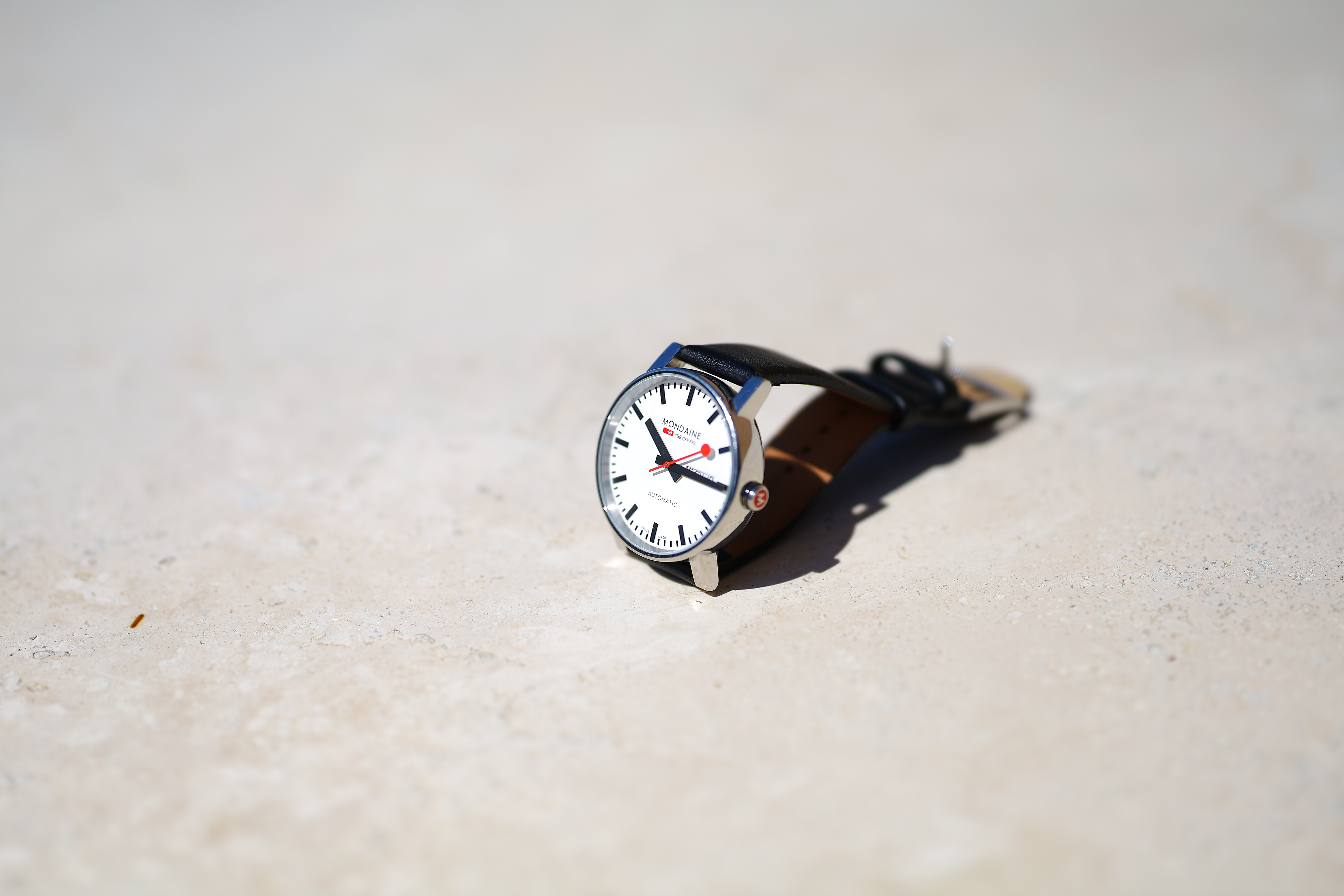 Spherochromatism performance topSpherochromatism, also called secondary spherical chromatic aberration or "color bokeh," is an advanced form of spherical and chromatic aberration in a different dimension than lateral chromatic aberration. It happens mostly in fast normal and tele lenses when spherical aberration at the ends of the color spectrum are corrected differently than in the middle of the spectrum. Spherochromatism can cause colored fringes on out-of-focus highlights, usually seen as green fringes on backgrounds and magenta fringes on foregrounds. Spherochromatism is common in fast lenses of moderate focal length when shooting contrasty items at full aperture. It goes away as stopped down. Miraculously, there is nearly no spherochromatism in this ultra-speed tele. Canon really did their homework with their "Blue-Spectrum Refractive Compound" to eliminate this: Mondaine A132.30348.11SBB at close-focus distance at f/1.2, 10 July 2020. Canon EOS RP at ISO 50 at 1/4,000. bigger or camera-original © file.