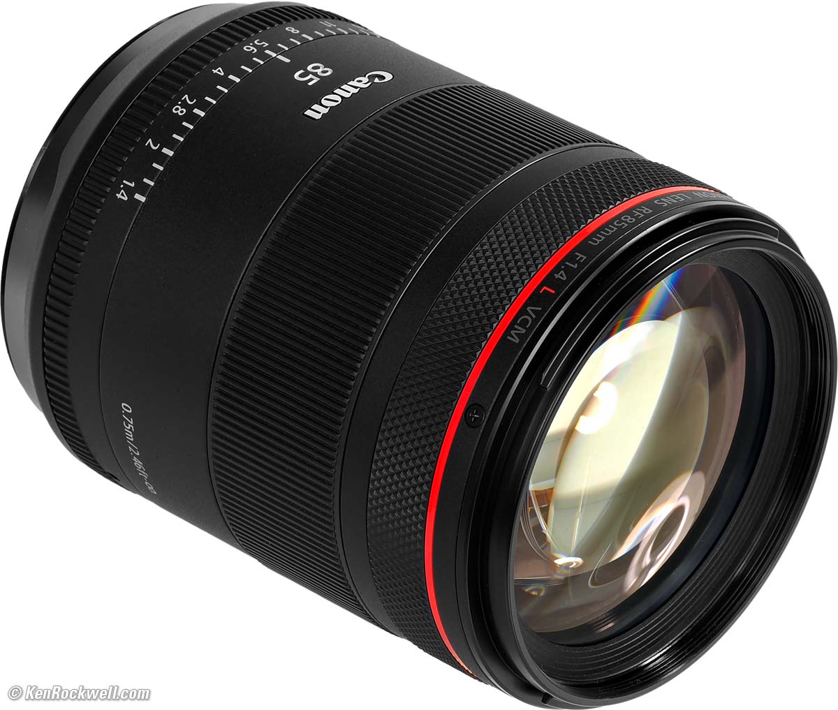 Canon RF 85mm f/1.4L VCM (67mm filters, 22.4 oz./636g, 2.5'/0.75m close focus, 0.12× macro ratio, $1,649). bigger. I got mine at B&H. I'd also get mine at Adorama, at Amazon or at Crutchfield, or get it used if you know How to Win at eBay, or get it used at KEH. This 100% all-content, junk-free website's biggest source of support is when you use those or any of these links to my personally approved sources I've used myself for way over 100 combined years when you get anything, regardless of the country in which you live. Canon does not seal its boxes in any way, so never buy at retail or any other source not on my personally approved list since you'll have no way of knowing if you're missing accessories, getting a defective, damaged, returned, non-USA, store demo or used lens — and all of my personally approved sources allow for 100% cash-back returns for at least 30 days if you don't love your new lens. I've used many of these sources since the 1970s because I can try it in my own hands and return it if I don't love it, and because they ship from secure remote warehouses where no one gets to touch your new lens before you do. Buy only from the approved sources I've used myself for decades for the best prices, service, return policies and selection.