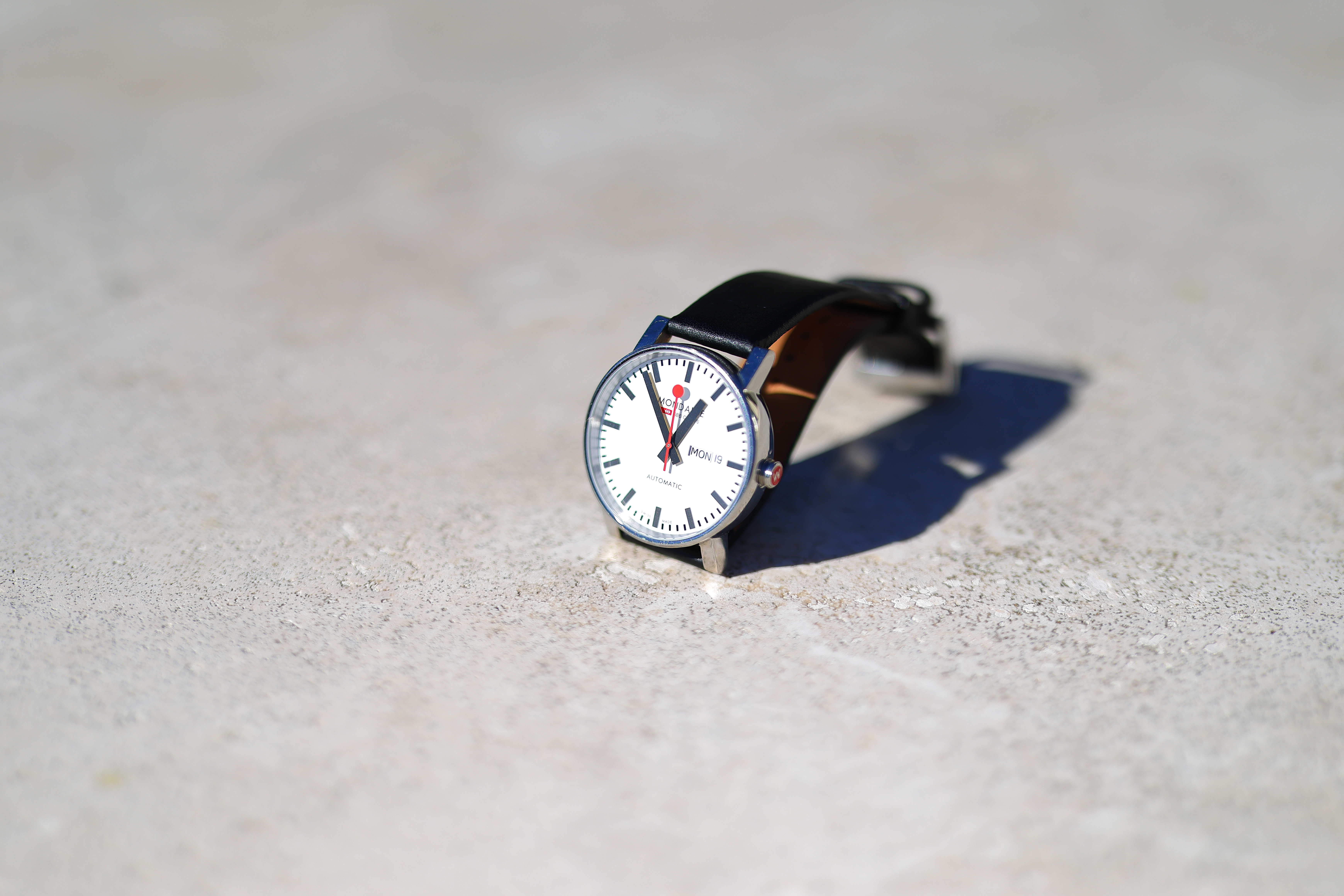 Spherochromatism performance topSpherochromatism, also called secondary spherical chromatic aberration or "color bokeh," is an advanced form of spherical and chromatic aberration in a different dimension than lateral chromatic aberration and therefore cannot be corrected with software or automatic corrections. It happens mostly in fast normal and tele lenses when spherical aberration at the ends of the color spectrum (red and blue) are corrected differently than in the middle of the spectrum (green). Spherochromatism can cause colored fringes on out-of-focus highlights, usually seen as green fringes (the middle of the spectrum) on background highlights and magenta fringes (the red and blue ends of the spectrum added together make magenta) on foreground highlights. Spherochromatism is common in fast lenses of moderate focal length when shooting contrasty items at full aperture. It goes away as stopped down. Spherochromatism is a completely different aberration from lateral color fringes. It has only a little spherochromatism, with minor yellow-green fringes behind and not much of any color ahead of the plane of perfect focus: Mondaine A132.30348.11SBB at close-focus distance at f/1.4, 24 February 2025. Shot on Canon EOS R6 III at 1/12,800 at Auto ISO 100 (LV 14.6). bigger or camera-original © file.