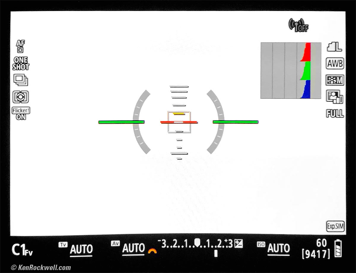 Real Depth-of-Field PreviewsDSLRs have crummy depth-of-field previews. To most people, all these buttons do is make the finder get dark, so people never use the depth-of-field preview. Even for people who do, the finders get so dark as the lens stops down to its taking aperture that you can't see much. The EOS RP's finder doesn't darken with depth-of-field preview. It stays just as bright so for the first time in Canon full-frame we can see what we're really going to get. Finally we have a camera we can use to select the best aperture for how we really want our pictures to look before we press the shutter. The EOS RP shows exactly how the picture will look at very large apertures like f/1.4, while DSLR viewfinders have never shown how shallow the depth-of-field actually will be at apertures larger than about f/2.5. Few people know that modern DSLR "bright" screens can't show the full amount of a lens' defocus at apertures wider than about f/2.5. If you use your preview button on a DSLR, you can't see the actual depth of field at apertures wider than f/2.5 on modern laser-cut matte screens (we haven't used actual ground glass since the 1970s), but today with my EOS RP, my f/1.2 and f/1.0 lenses show exactly how little is in focus in my finder. If you think I'm kidding, take your f/1.8 or faster lens and try your preview button on your DSLR, and you won't see any change until you stop down to f/2.8 or smaller. Yes, on a DSLR, all lenses faster than f/2.5 don't look any brighter or have any less depth of field in the finder than an f/2.5 lens does, while on the EOS RP for the first time we can see exactly how little is in focus with a fast lens.