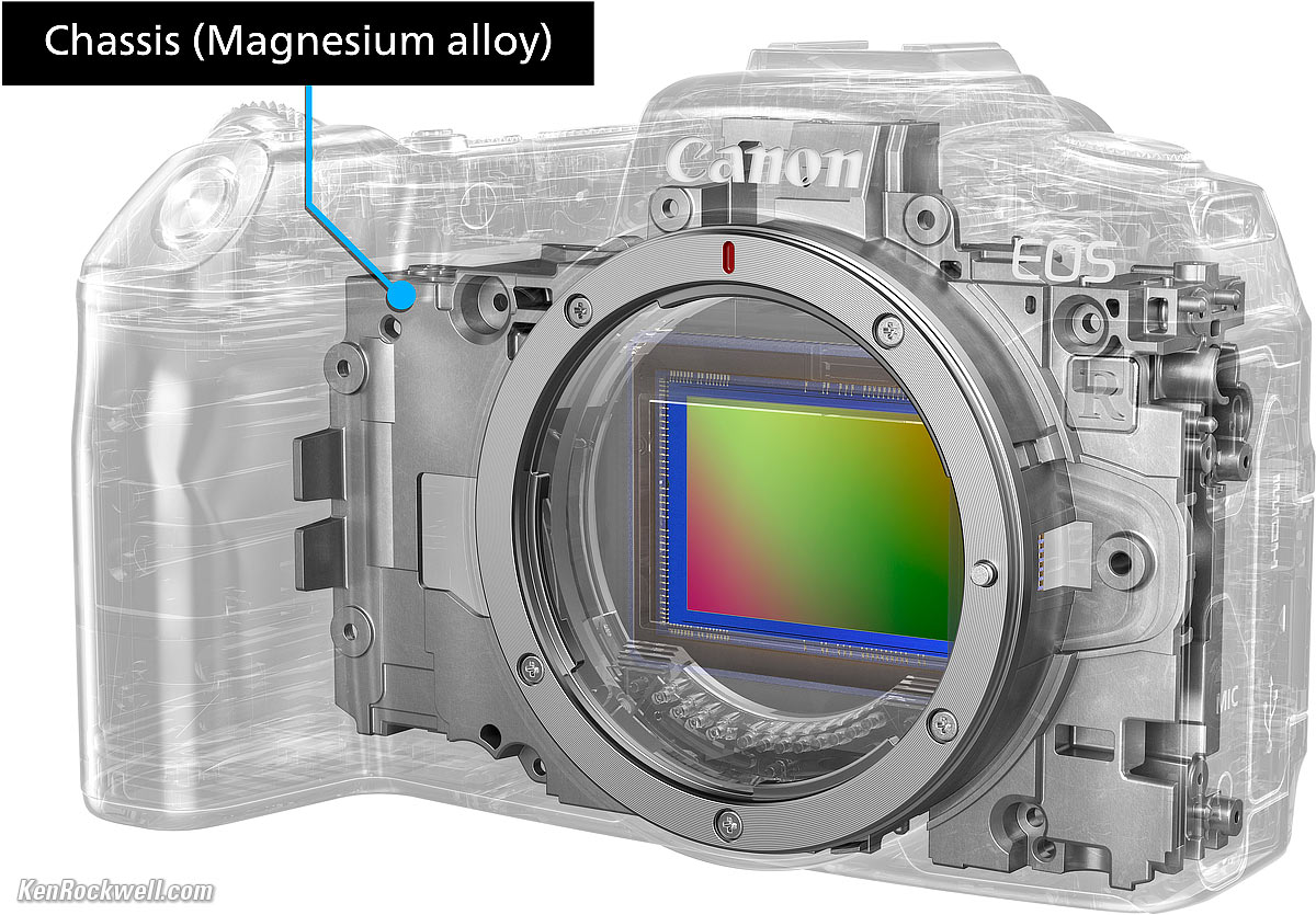 BodyCanon EOS RP. bigger. Metal inner core, frame and lens mount with plastic external parts.