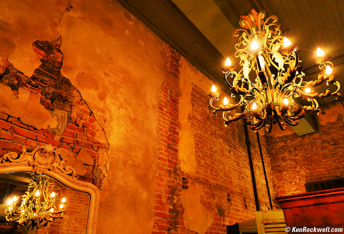 Ocre Walls, New Orleans, Louisiana, February, 2019. Canon EOS RP, Canon RF 24-105mm f/4L IS at 24mm, hand-held at 1/8 at f/4.5 at Auto ISO 1,250, Perfectly Clear. bigger or full-resolution.