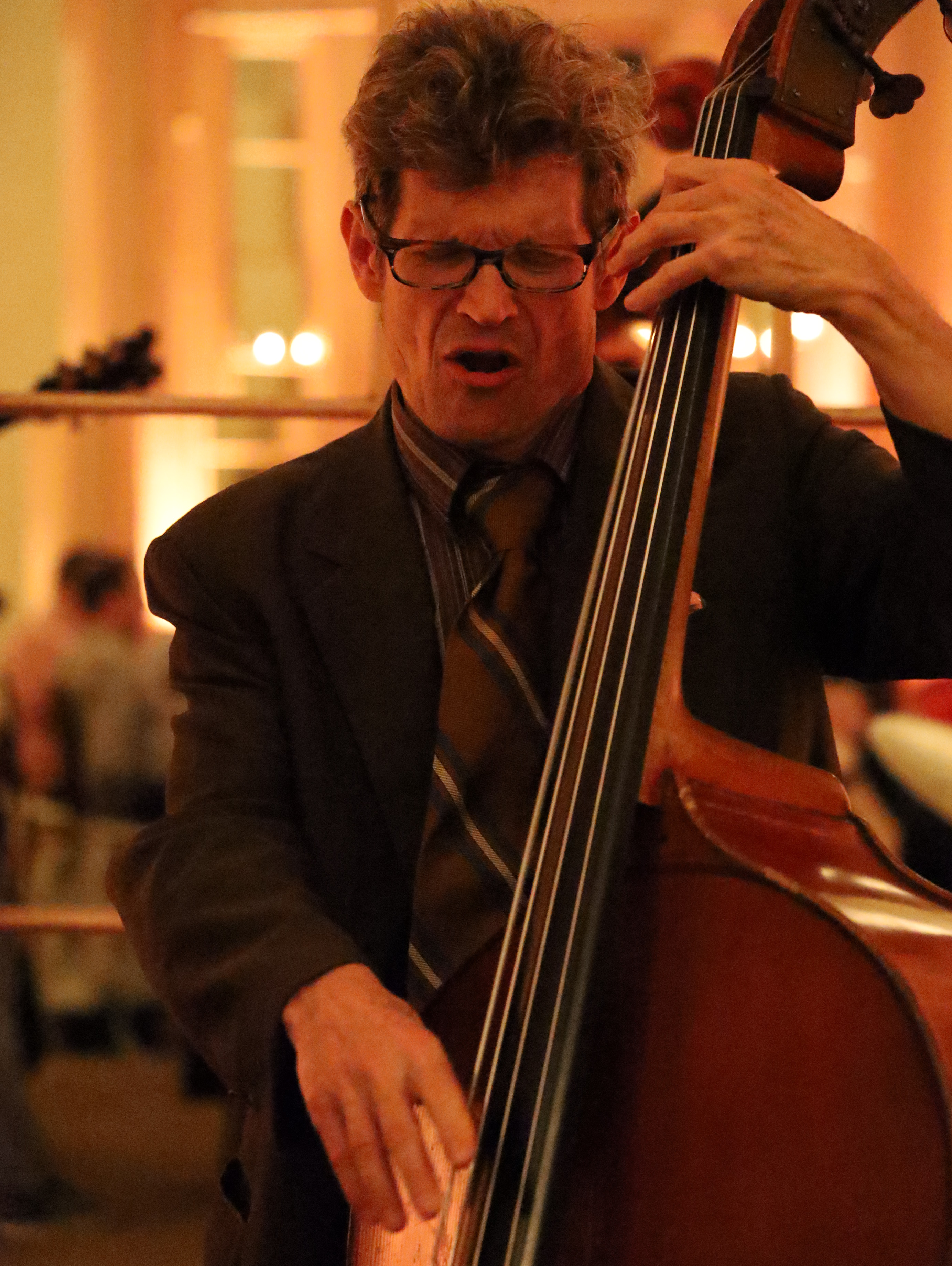 ISO 40,000 High ISOs performance topBassist Playing in the Dark, New Orleans, Louisiana, February, 2019. Canon EOS RP, Canon RF 24-105mm f/4L IS at 105mm, 1/100 at f/4 at ISO 40,000, Perfectly Clear. bigger or camera-original © file. This was at LV 2, which means it was pretty hard to read in light this dim, much less take a picture of action.