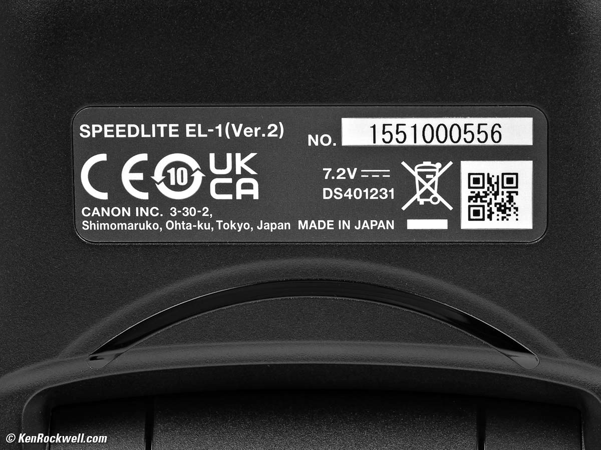 V2 Versus the Original EL-1While people who've never owned one of these will quote the specifications that the v2 has very slightly less peak power and slightly more full-power flashes per charge, in my actual testing I found that the my v2 has slightly more peak power. The slight variation I see in the measured guide numbers of my v2 versus my original EL-1 more likely come from variations in the furniture in my studio where I measured the original in 2021 and the v2 in 2026 rather than differences in the flashes. The sticker and box say "v2;" otherwise they have the same power and battery life and recycling time and to 50 to 170 full-power shot limitations as the original unit. I'd get an original used one at eBay if you know How to Win at eBay, or get it used at KEH, and not worry about buying one of these "V2." Typically something like this happens when Canon no longer can get a part to make the original, and has to redesign it to be the same product with newer parts, or it's the same product renamed just to justify a price hike, but otherwise, it's the same as the original! The press release for the v2 was copied from the original 2020 press release that mentioned "new" controls and user interface and the built-in fan; in fact these are unchanged and no longer new in the v2. Hah! The only real difference is if you care about it being made domestically in Japan (this v2) rather than having been dumped to Burma (the original EL-1).