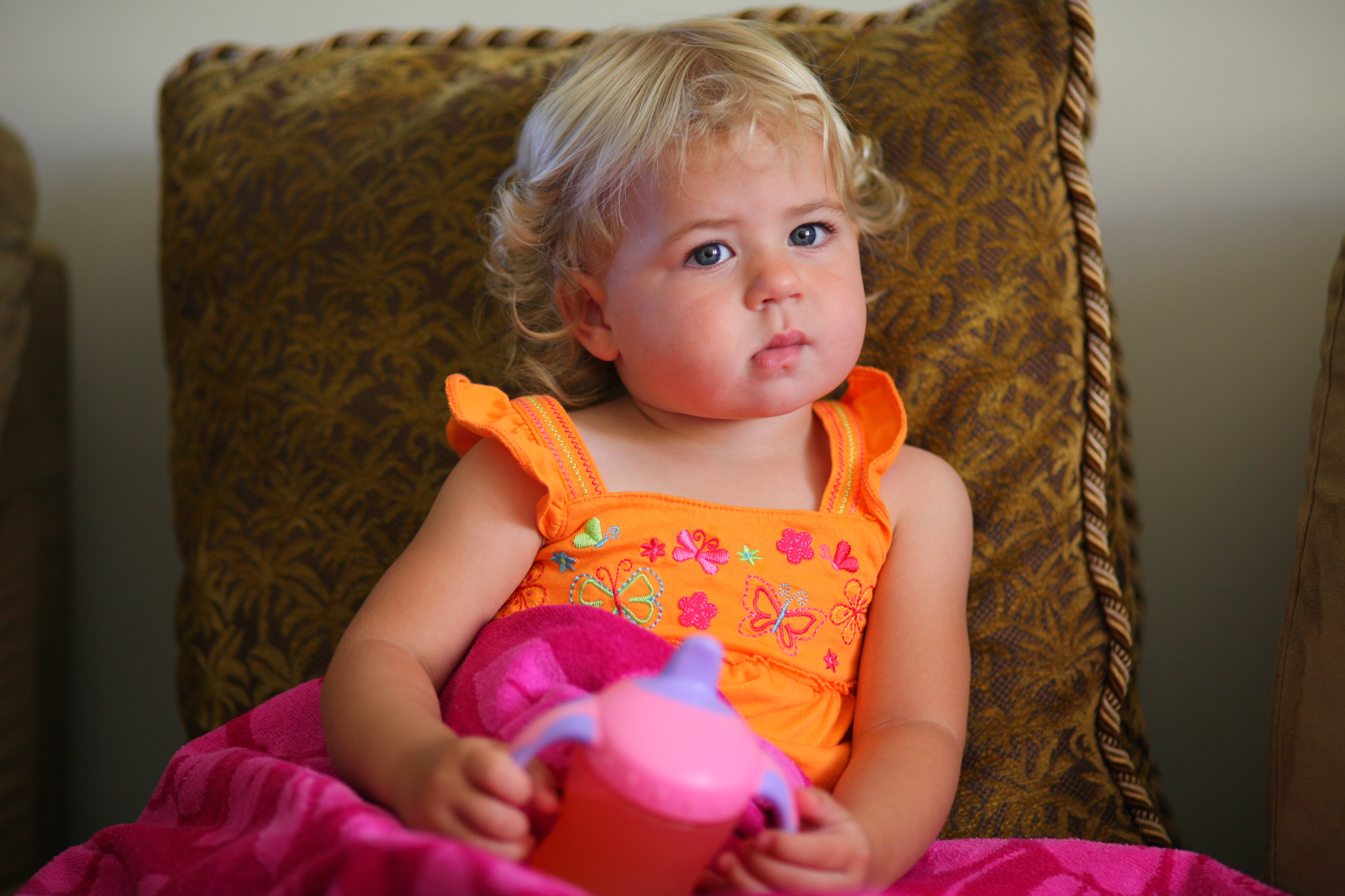 Not bad, shot wide-open at a high ISO which is softer in the 5D Mark II, so I added some smart sharpening at 200% with a radius of 0.2 pixels. It's probably even sharper at longer distances; I'm pretty close to my two-year-old here. Note the tiny depth-of-field, only a fraction of an inch or a few millimeters. I would show more central sharpness examples, but it's pointless: it's just as sharp at any aperture in the center; stopping down merely increases depth-of-field. Diffraction steps in by about f/8.