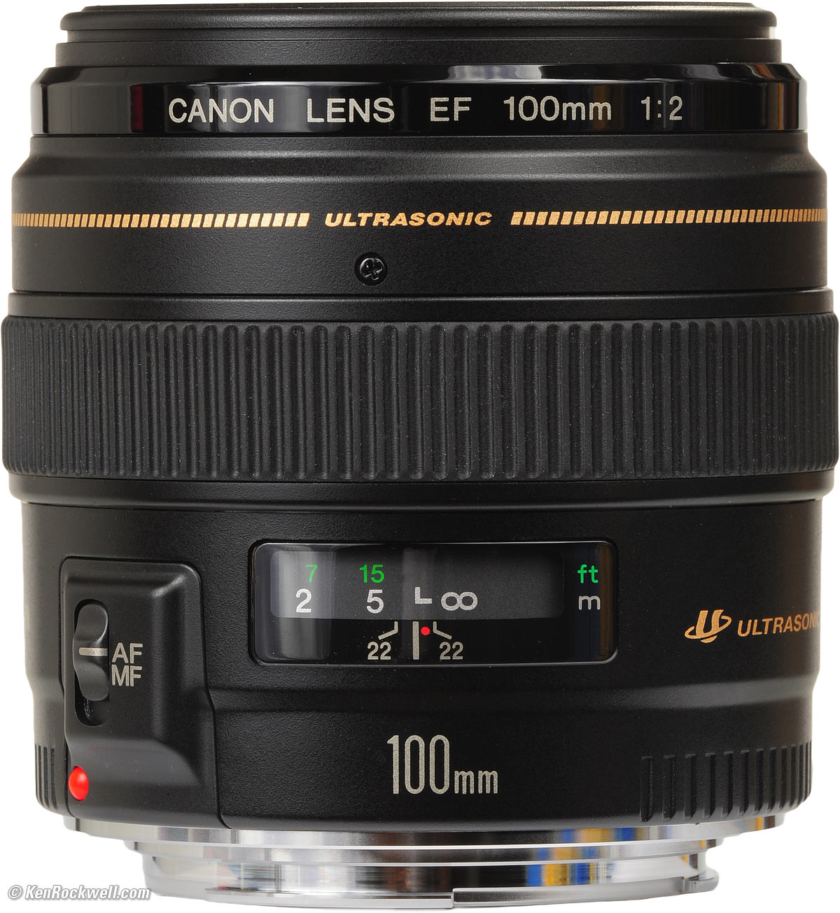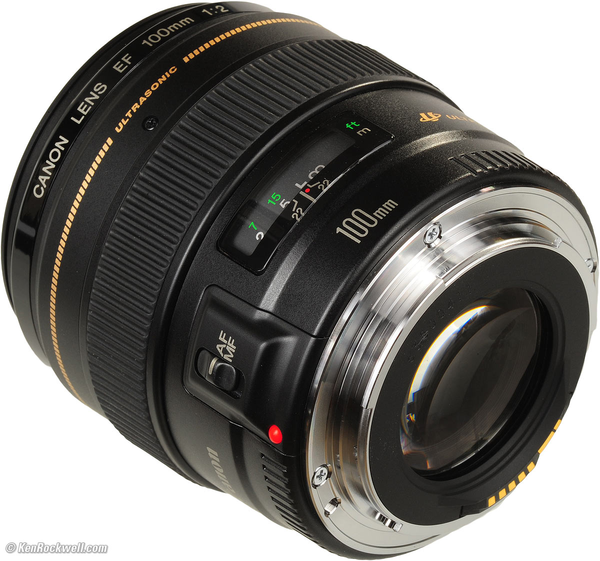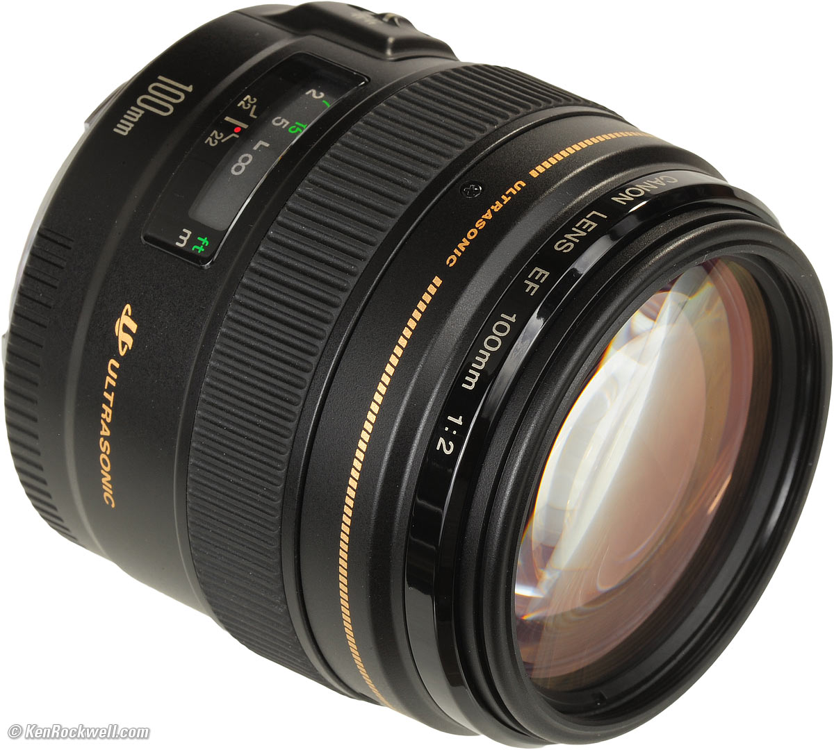 Canon 100mm f/2EF USM (1991-2018)Intro Specs Performance Compared Recommendations Canon EF 100mm f/2 USM (metal 58mm filter thread, 14.7 oz/417g, 3'/0.9m close focus, $500 new at Amazon or about $250 used if you know How to Win at eBay. This all-content, junk-free website's biggest source of support is when you use those or any of these links to approved sources when you get anything, regardless of the country in which you live. Thanks for helping me help you! Ken.