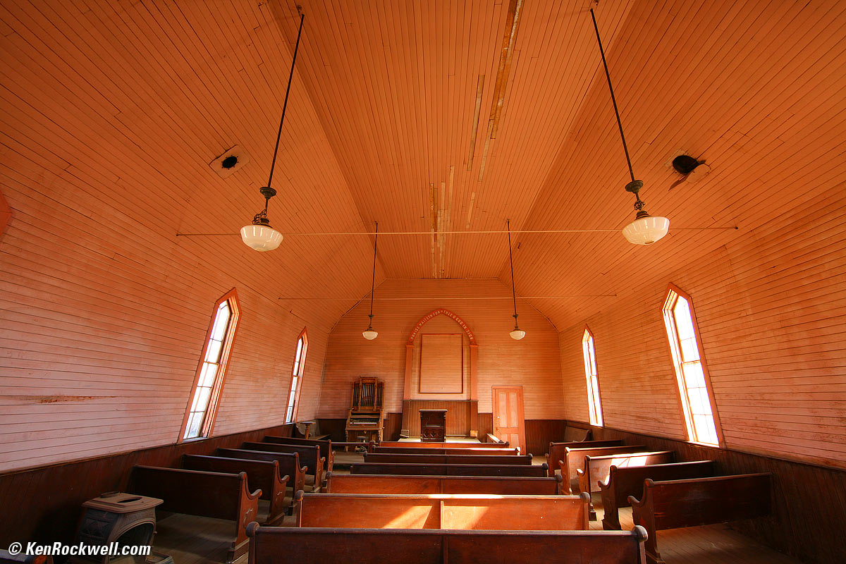 Twin Lakes. f/8, 5D. enlarge. This is a full-frame lens, and that's how I'm testing it. Overall, this new lens performs so much better than the older 14mm L that it eliminates the need for correction in DxO. This new lens is sharper, has less distortion, less ghosting and less lateral color fringes than the original EF 14mm f/2.8 L. Victorian Hotel. f/5.6 at 1/13, hand-held 5D at ISO 400. enlarge. Front Cap