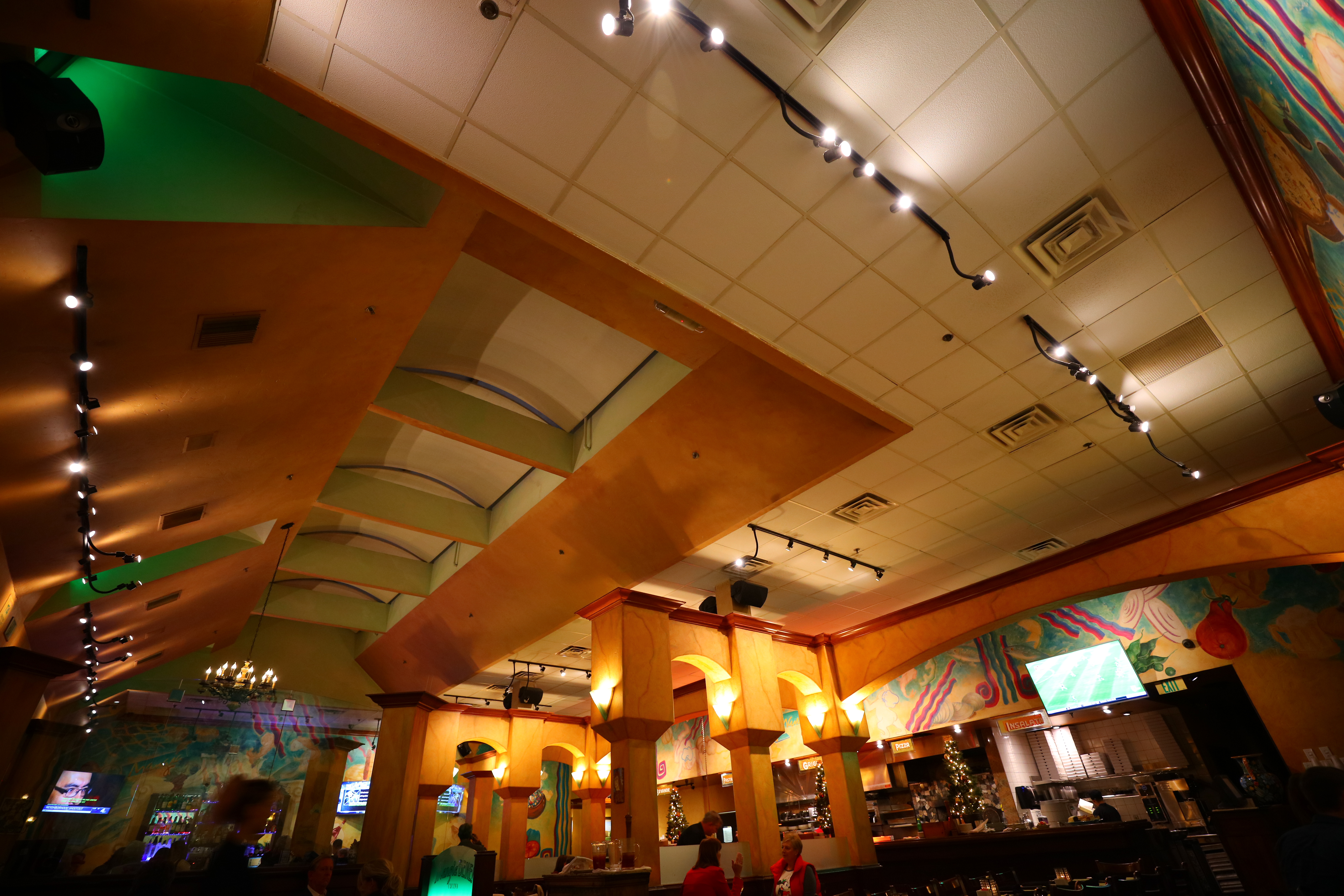 ComaRestaurant interior, 02 December 2016. Canon 5DSR, 16-35/2.8 III at 16mm at f/2.8 at 1/20 hand-held at ISO 1,250. bigger or camera-original © file to explore on your computer. Coma, or sagittal coma flare, is often seen with fast normal to wide lenses as weird batwing shapes on bright points of light in the corners. I see no coma in this lens, which is excellent.