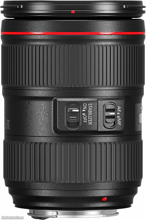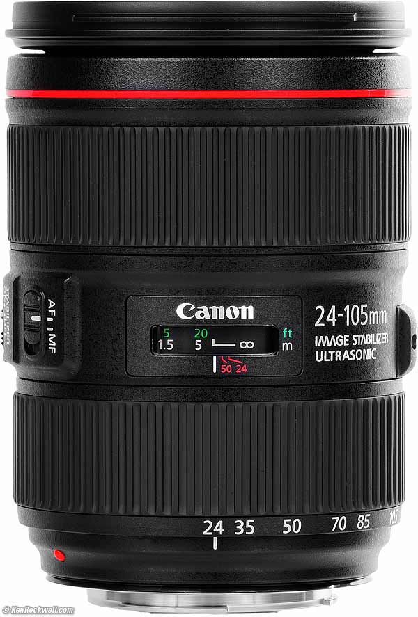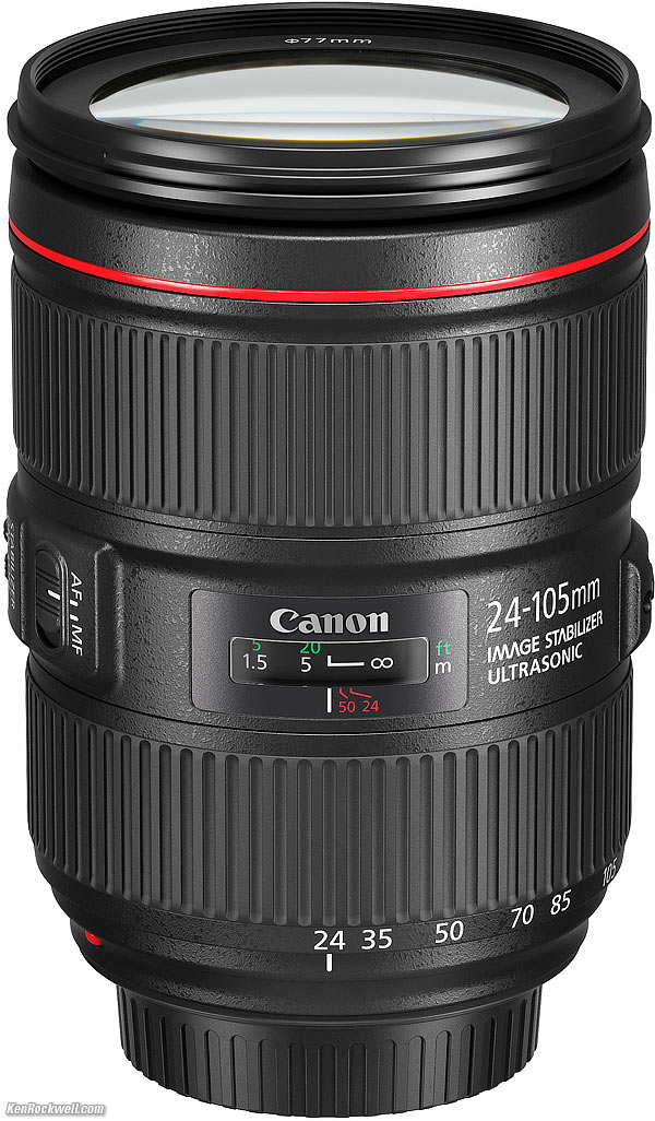 RecommendationsTop Sample Images Intro Specifications Performance Compared Recommendations I got my EF 24-105mm f/4 L IS USM II at Adorama. I'd also get it at Amazon, at B&H or at Crutchfield, or used at eBay if you know How to Win at eBay. Get this new IS II L lens for hand-held shots of things that hold still. Get the 24-70mm f/2.8L II if you're on a tripod or shooting action. Get the 24-105mm STM, 24-70/4 L IS or original 24-105mm f/4 L IS if you plan to carry the lens around your shoulder all day. I wish Canon made a good all-purpose full-frame zoom that went to at least 135mm; I'll admit I still use my 28-135 IS and ancient 28-105mm lenses because they weigh half of what any of these L lenses do, and I have no problem making great images with them. With lens profiles the old plastic-barreled lenses make better images than they ever have before. The very best protective filter is the 77mm Hoya multicoated HD3 UV which uses hardened glass and repels dirt and fingerprints, and is also multicoated. For less money, the B+W 77mm 010 is an excellent filter, as are the multicoated version and the basic multicoated Hoya filters, but the Hoya HD3 is the toughest and the best. Filters last a lifetime, so you may as well get the best. The Hoya HD3 stays cleaner than the others since it repels oil and dirt. I got my EF 24-105mm f/4 L IS USM II at Adorama. I'd also get it at Amazon, at B&H or at Crutchfield, or used at eBay if you know How to Win at eBay. This all-content, junk-free website's biggest source of support is when you use those or any of these links to approved sources when you get anything, regardless of the country in which you live. Canon does not seal its boxes in any way, so never buy at retail or any other source not on my personally approved list since you'll have no way of knowing if you're missing accessories, getting a defective, damaged, returned, store demo or used camera. I use the stores I do because they ship from secure remote warehouses where no one gets to touch your new camera before you do. Buy only from the approved sources I use myself for the best prices, service, return policies and selection. Thanks for helping me help you! Ken Rockwell.