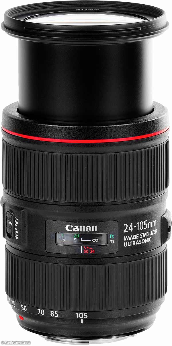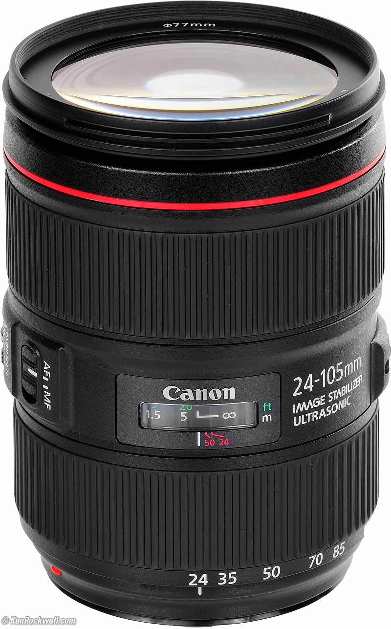 Canon 24-105mm f/4 L IS IIFull-Frame EOS EF (2016 ~ )Top Sample Images Intro Specifications Performance Compared Recommendations Canon EF 24-105mm f/4 L II (77mm filters, 27.8 oz./789g, 1.5'/0.45m close-focus, $1,299) bigger. I got mine at Adorama. I'd also get it at Amazon, at B&H or at Crutchfield, or used at eBay if you know How to Win at eBay. This all-content, junk-free website's biggest source of support is when you use those or any of these links to my personally-approved sources when you get anything, regardless of the country in which you live. Canon does not seal its boxes in any way, so never buy at retail or any other source not on my personally approved list since you'll have no way of knowing if you're missing accessories, getting a defective, damaged, returned, store demo or used camera. Buy only from the approved sources I use myself for the best prices, service, return policies and selection. Thanks for helping me help you! Ken.