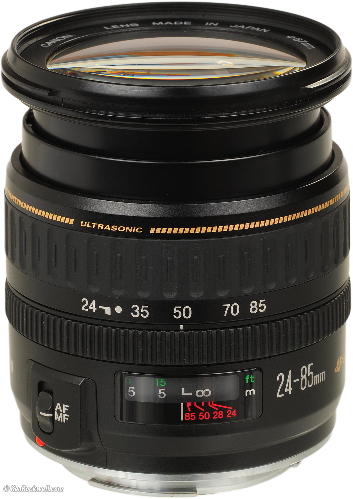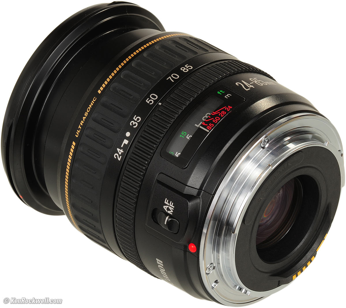 Name Canon calls this the CANON ZOOM LENS EF 24-85mm f/3.5-4.5 ULTRASONIC. EF means "electronic focus," meaning that there is an autofocus motor in the lens itself. All Canon lenses since 1987 have been EF. ULTRASONIC means USM, which means you may grab the focus ring at any time for instant, silent manual focus override.