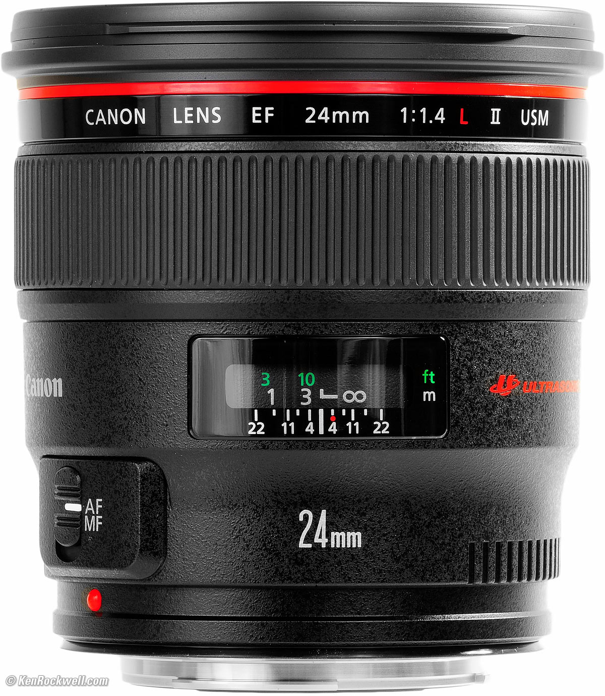Canon EF 24mm f/1.4L II USM2008~today© 2015~2024 KenRockwell.com. All rights reserved. Sample Images Intro Specs Performance Compared Usage Recommendations More Canon EF 24mm f/1.4 L II (77mm metal filter thread, 22.8 oz./647g, 10"/0.25m close focus, $1,549 or about $500 used if you know How to Win at eBay. enlarge. I'd get mine at at B&H or at Amazon, or get it used if you know How to Win at eBay. This all-content, junk-free website's biggest source of support is when you use those or any of these links to approved sources when you get anything, regardless of the country in which you live. Canon does not seal its boxes, so never buy at retail or any other source not on my personally approved list since you'll have no way of knowing if you're missing accessories, getting a defective, damaged, returned, store demo or used lens. Buy only from the approved sources I use myself for the best prices, service, return policies and selection. Thanks for helping me help you! Ken.