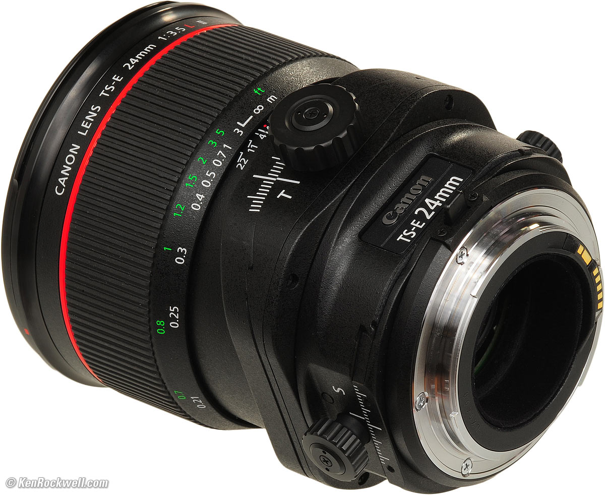 History This new Canon TS-E 24mm f/3.5L II lens replaces the first Canon TS-E 24mm f/3.5L that was introduced in 1991. This new lens adds: 1.) More tilt and shift range 2.) A new rotating mount to make it trivial to change the shift and tilt axes. 3.) A tilt lock to lock the tilt at neutral.