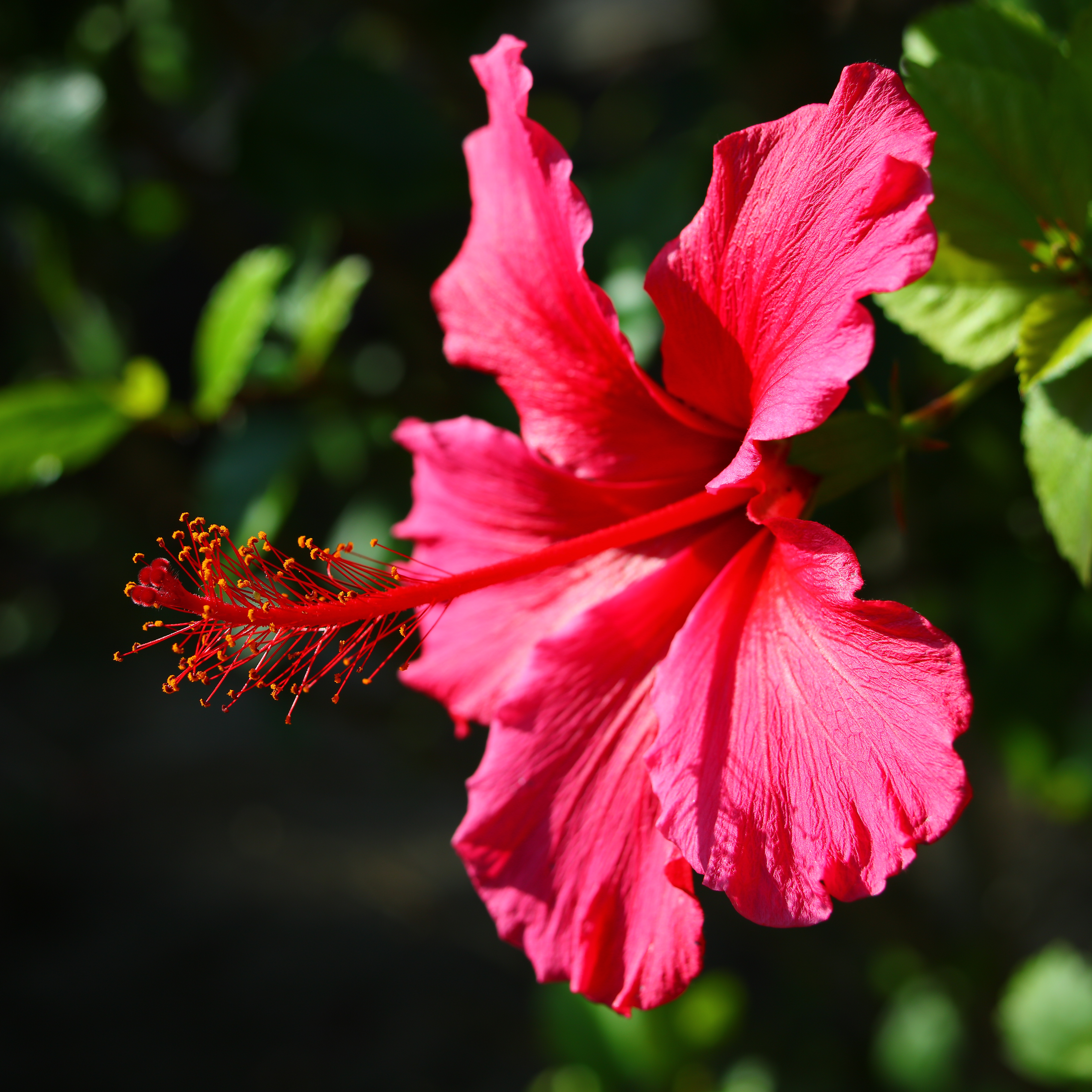 Hibiscus, 10:30 AM, Tuesday, 09 November 2021. Canon 5DS/R, EF 28-80mm f/2.8-4L USM at 75mm at f/8 at 1/250 at Auto ISO 100, -1.3 stops exposure compensation to keep the vivid magenta against black from saturating the red channel (LV 14.0), Perfectly Clear. bigger, full-resolution or camera-original © JPG file.