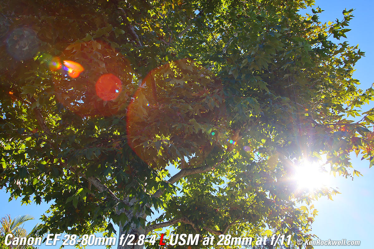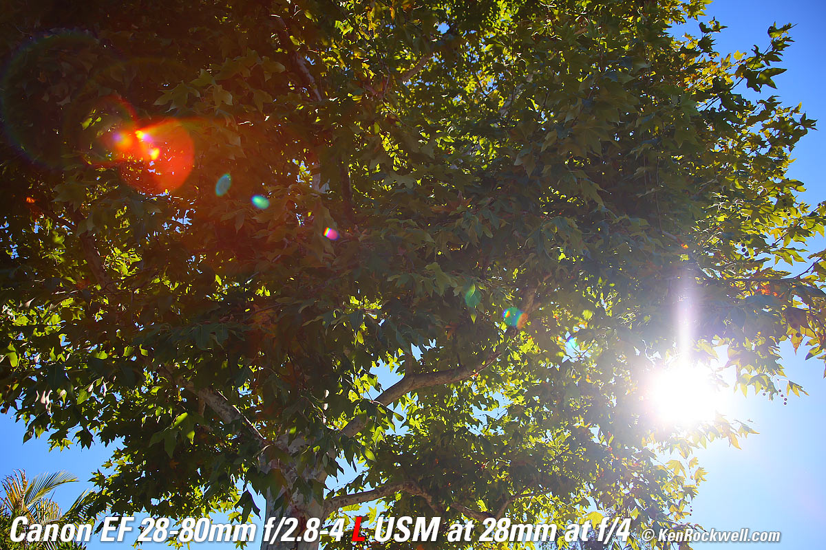 Recommendations topSample Images Intro New Good Bad Missing Compatibility Specifications Performance Want L-class luxury for a give-away price that works on all Canon mirrorless, DSLR and EOS 35mm SLR cameras? Here you go! I'd get my EF 28-80/2.8-4L at eBay (How to Win at eBay). Most seem to come directly from Japan, which is great because the Japanese respect and take much better care of their lenses than we Americans do. Not only that, but shipping via EMS to the USA usually arrives in a couple of days, faster than what I buy from Americans on eBay! Don't worry that this lens becomes completely useless if its electronic focus motor dies — and that there are no replacement parts. The lens cannot focus at all without its motor; there is no direct mechanical focus option. If a lens has lasted thirty years and it's still good, I don't foresee it dying, and even if it does, buying a replacement costs about the same as a repair! Look at its eBay listings; I don't see any broken ones as I often see for less reliable lenses this age. Other products that have problems are found for sale broken all over eBay, but not this one. I don't worry at all about my exotic 1980s EF 50mm f/1.0 L or EF 300mm f/2.8 L which have the same exotic all-electronic focus system from 30 years ago. I use a clear (UV) protective filter instead of a cap so I'm always ready to shoot instantly. I only use a cap when I throw this in a bag with other gear without padding — which is never. The UV filter never gets in the way, and never gets lost, either. The very best protective filter is the 72mm Hoya multicoated HD3 UV which uses hardened glass and repels dirt and fingerprints. For less money, the Canon 72mm PROTECT and B+W MRC 010 are excellent filters, as is the B+W 72mm 010 and the basic multicoated Hoya filters, but the Hoya HD3 is the toughest and the best. Filters last a lifetime, so you may as well get the best. The Hoya HD3 stays cleaner than the others since it repels oil and dirt. All these protective filters are just as sharp and take the same pictures, the difference is how much abuse they'll take and stay clean and stay in one piece. Since filters last a lifetime or more, there's no reason not to buy the best as it will last you for the next 40 years. Filters aren't throwaways like digital cameras which we replace every few years, like it or not. I'm still using filters I bought back in the 1970s! For color slide film like Velvia 50, I use a 72mm Nikon A2 or a 72mm 81A filter outdoors. For B&W film outdoors, I'd use a 72mm Hoya HMC Yellow K2 or 72mm Hoya YA3 Pro Orange for most shots, or a 72mm Red 25A filter like the superb 72mm Hoya HMC R (25A) to exaggerate clouds. More at How to Use Filters for Film. I'd get my EF 28-80/2.8-4L at eBay (How to Win at eBay). This 100% all-content, junk-free website's biggest source of support is when you use those or any of these links to my personally approved sources I've used myself for way over 100 combined years when you get anything, regardless of the country in which you live. Buy only from the approved sources I've used myself for decades for the best prices, service, return policies and selection. Thanks for helping me help you! Ken.
