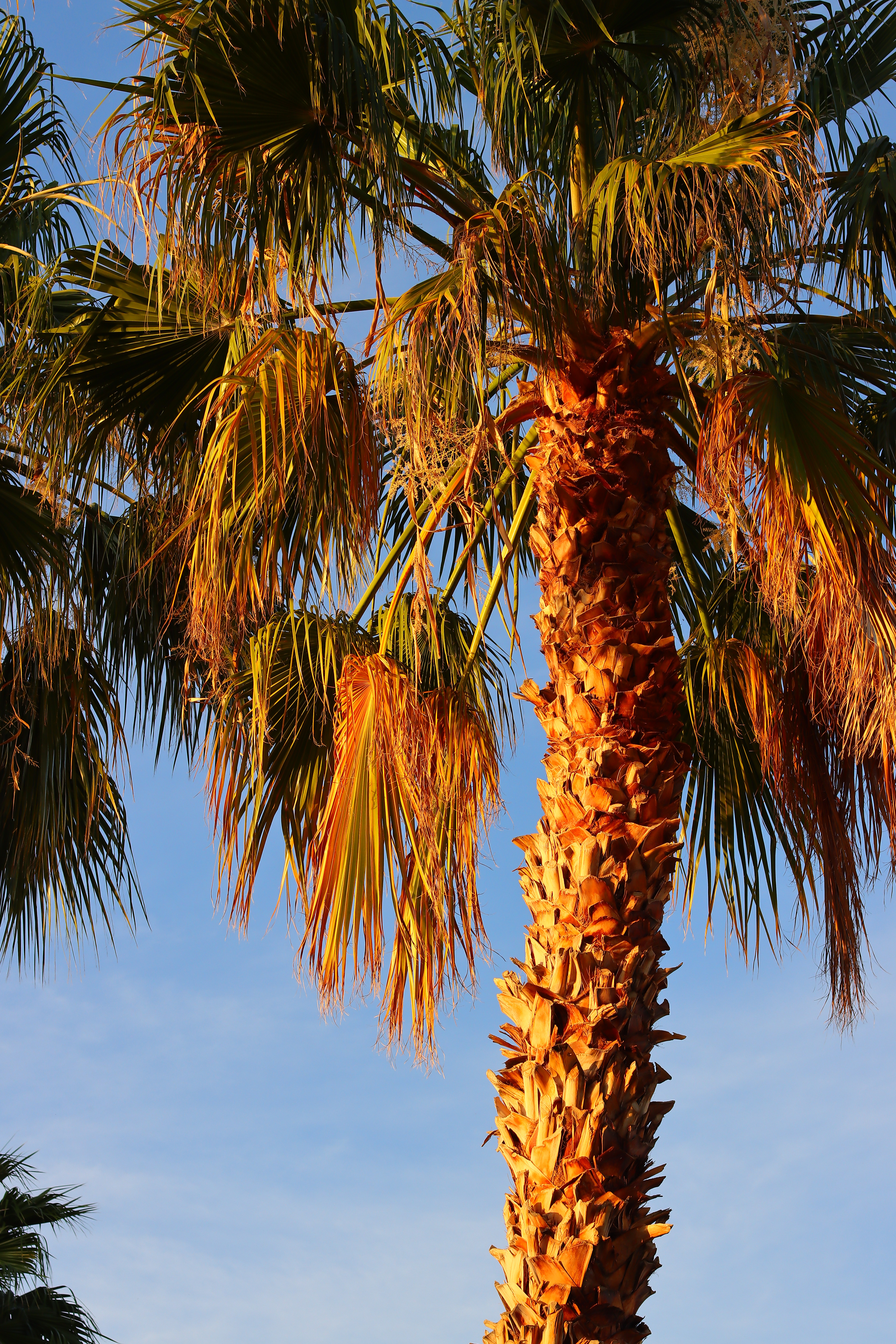 Desert Palm Tree in Last Light, 6:59 PM, Thursday, 07 May 2020. Canon 90D, Canon EF 50mm f/1.8 STM at f/8 at 1/160 at Auto ISO 100, -⅔ stop exposure compensation (LV 13.4), as shot. bigger or 10 MB camera-original © JPG file.