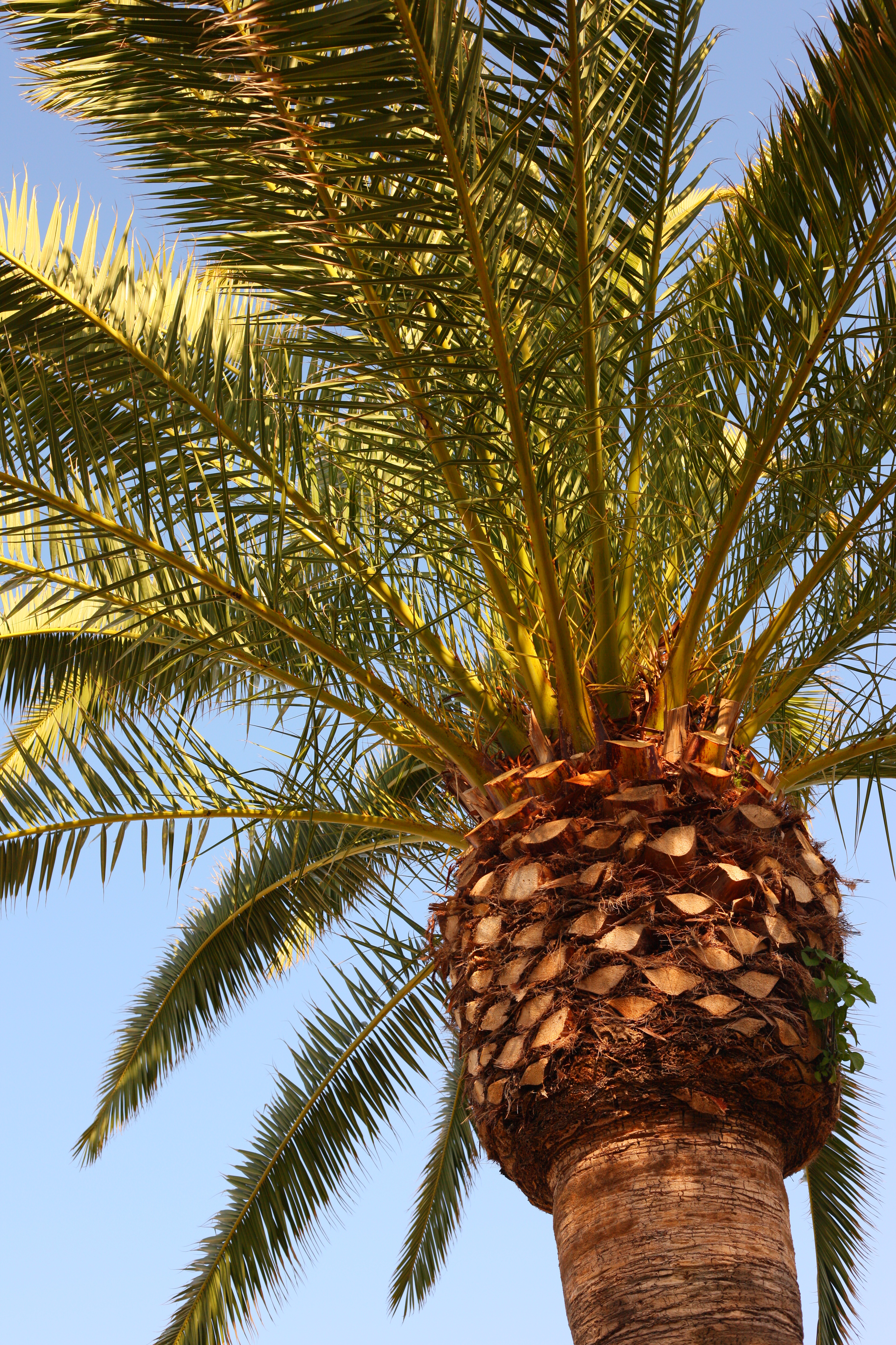 Palm, 1/250 at f/7.1, Canon 5D Mark II. Camera-original JPG (7MB). Realize that depth-of-field is limited: the branches at the lower left are out-of-focus. This was at ISO 200 with highlight (D+) and shadow optimization on, and shade A4 WB at +3 saturation.