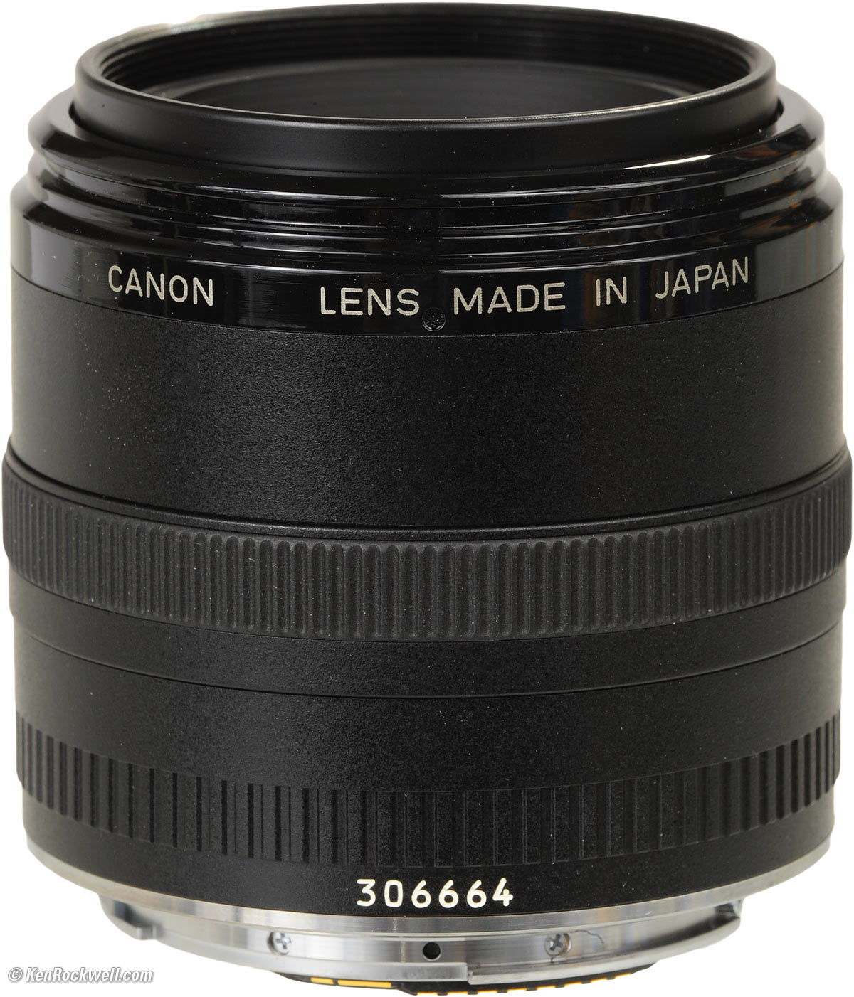 Canon's sharpest 50mm lens, this 50mm Compact-Macro works great for everything for which you'd use a 50mm fixed normal lens, and it focuses super-close for macro shots with no fiddling required. It uses a complex 9-element floating-element design for no distortion and intense sharpness at every distance, and it remains small, light and inexpensive. It is a superb choice as a normal lens for everyday use, with optics easily superior to the 50mm f/1.4. For dedicated macro work, I prefer the 100mm or 180mm macro lenses so I can stand far enough back as not to interfere with my own lighting or annoy the subject, and present it in a more natural perspactive. For flat art, this lens is superb. This is one of the oldest lenses still in Canon's catalog. It was introduced in December 1987, and continues to this day. I reviewed one sample in 2006 on the 5D, and another sample, made in 2007, on a 5D Mk II in 2010. This 50mm f/2.5 has exceptionally good optics, in an inexpensive, small and handy package.