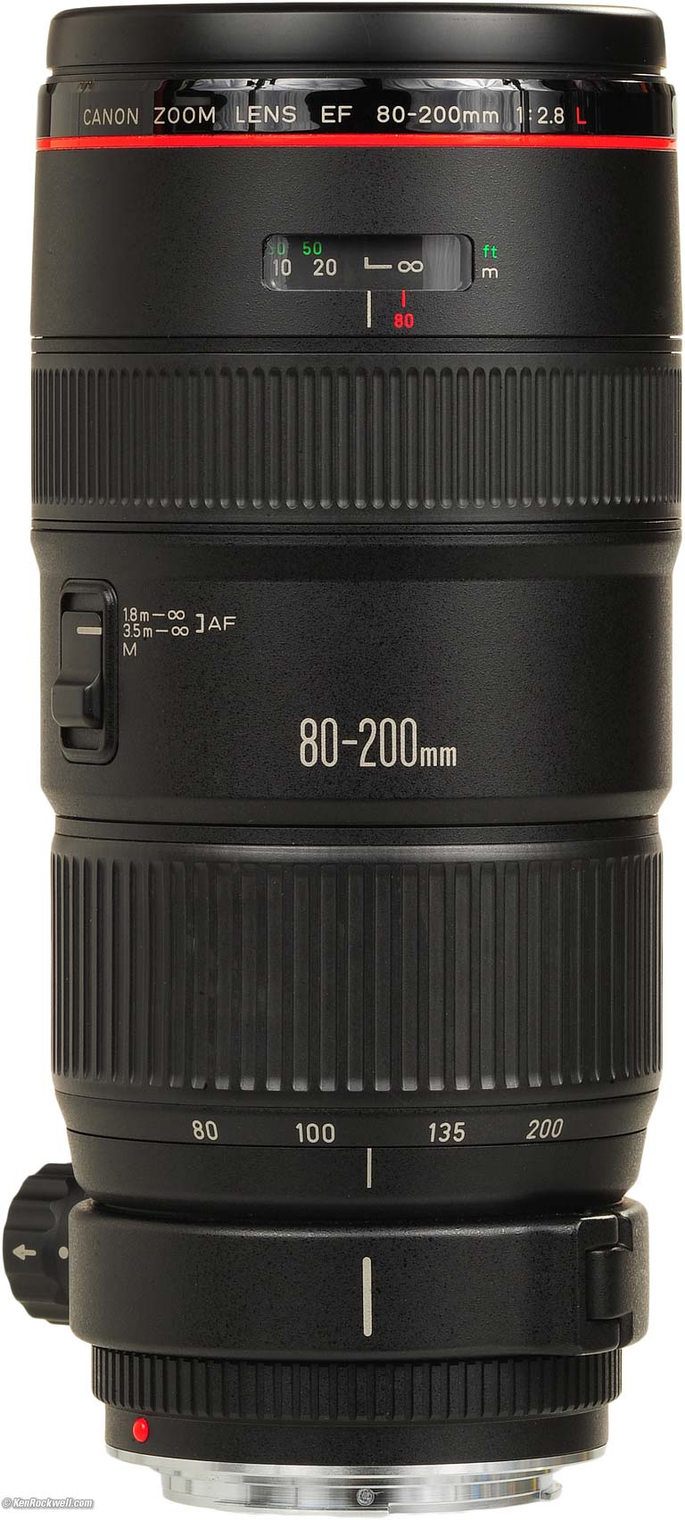 Mechanics performance top Rear, Canon 80-200 f/2.8 L. enlarge. The Canon 80-200mm f/2.8 L is an all-alloy professional athlete. It's rock-hard and leaner than today's plumper offerings, but weighs more than you'd expect because it's all metal — not plastic.