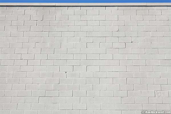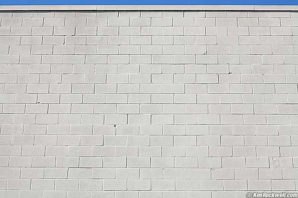 Distortion back to Performance or back to Introduction. Distortion is minor barrel distortion. It's invisible for anything you ought to be shooting with this lens. Plug +0.5 into Photoshop CS2's lens distortion filter to correct the distortion. This figure is for you to enjoy in your photography. This took me hours to calculate and is © and registered, so you'll need permission to use it for anything else. Thanks! Ken. Here's the Wall of Shame. Roll your mouse over it to see after correction in Photoshop. The Wall of Shame. Roll your mouse over it to see after correction in Photoshop.