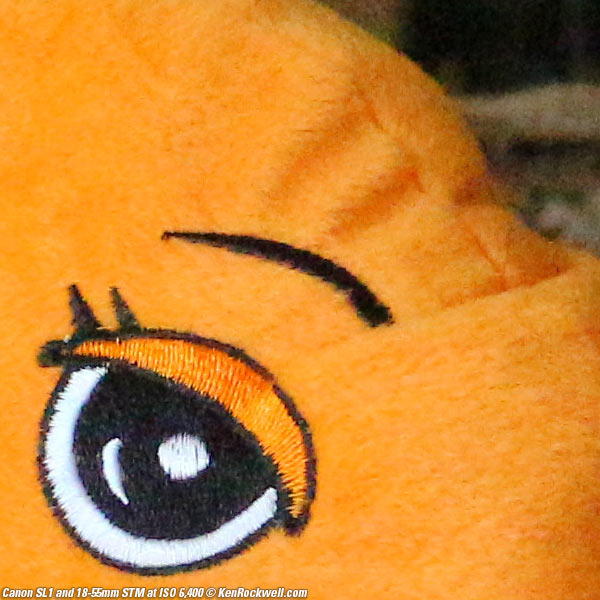 Crop from above image at 100%. If the entire image was printed at this same high magnification, it would be 52 x 35" (4.3 x 3 feet or 1.3 x 0.9 meters)! ISO 6,400 looks good enough so that normal people won't complain. Yes, full-frame cameras are a bit better, but ISO 6,400 is more than enough to shoot just about anything in any light worth shooting — and the SL1 can be set even higher if you need it.